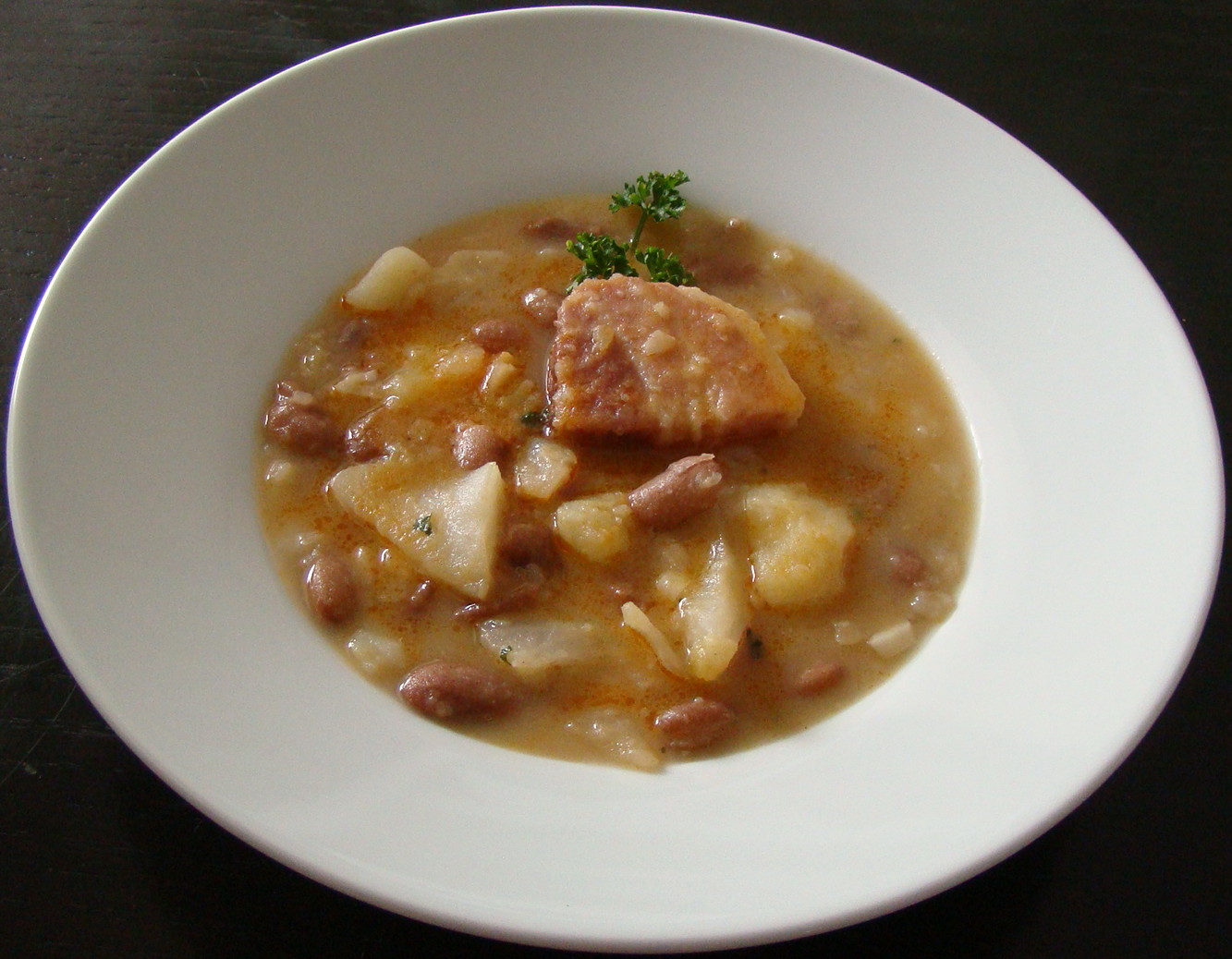 INGREDIENTES: 1 kilo de coles, 200 grs de judías, 1/2 kilo de calabaza, 1 kilo de papas, 1 kilo de carne de cochino, 1 cebolla, 4 dientes de ajos ajos, un poquito de comino y sal al gusto.