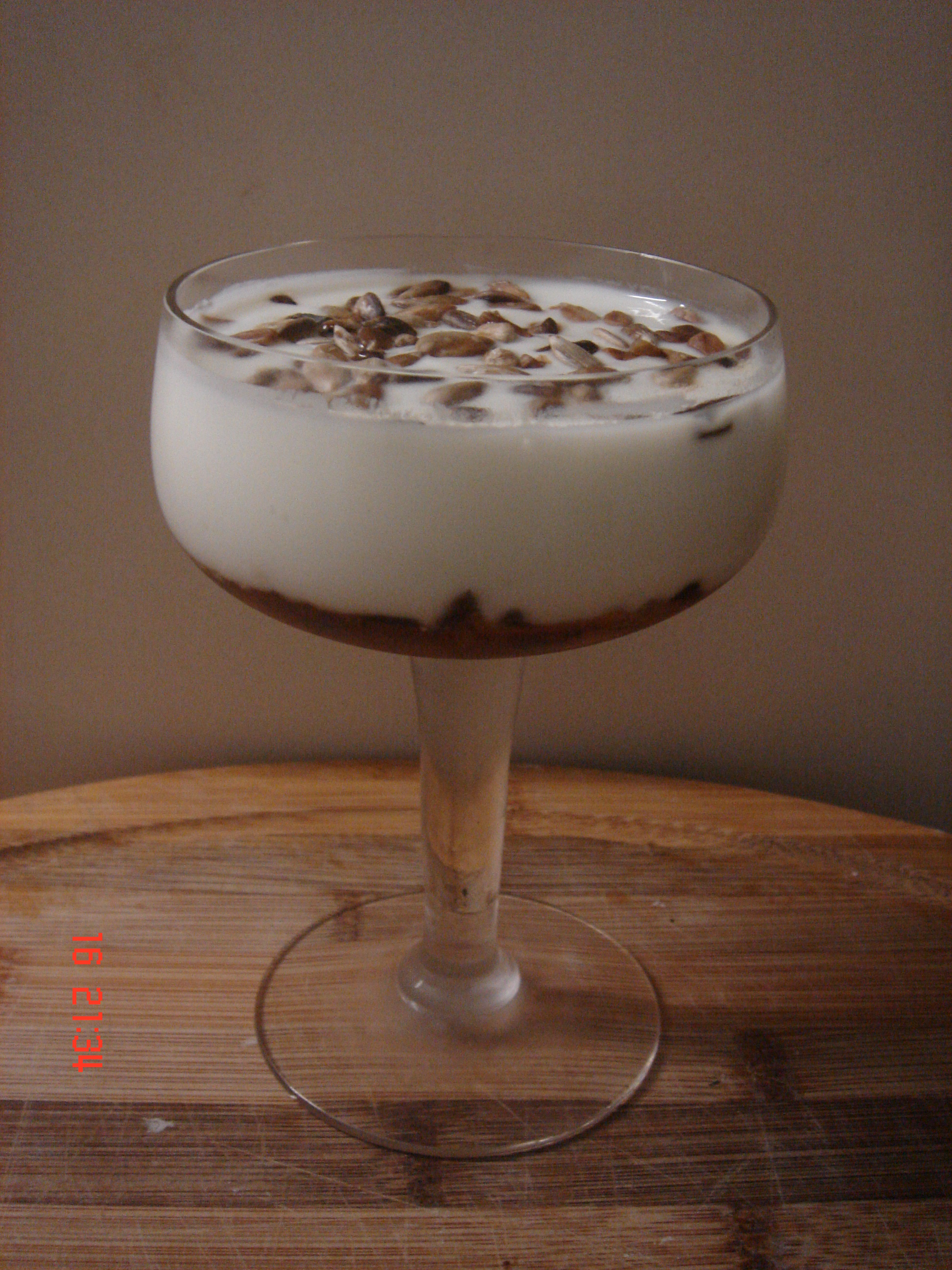 PREPARACIÓN: en una copa trasparente, ponemos la miel, después parte de las pipas y finalmente el yogur previamente batido y el resto de las pipas.