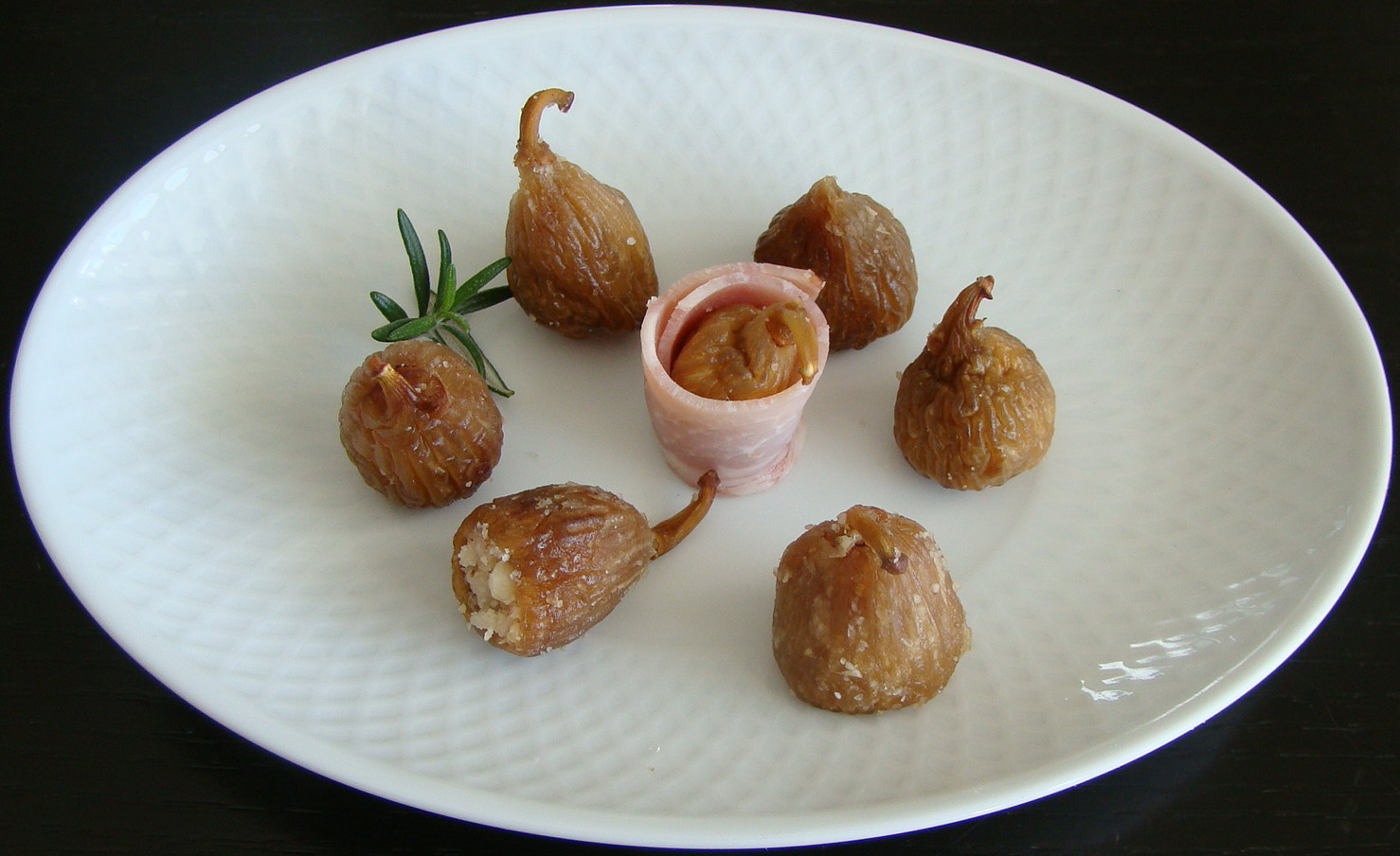 PREPARACIÓN: partimos la panceta en trocitos pequeños con las almendras partidas en trocitos. En un sartén ponemos la aceite de oliva y freímos, la panceta y las almendras. Partimos los higos quitamos un poquito de su masa y rellenamos. Procurar servir caliente, es un plato sencillo y muy sabroso.