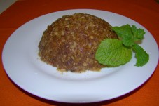 Entretanto, prepare el relleno; remoje en agua las pasas y después escúrralas y séquelas. Pele con cuidado las manzanas, elimine el corazón, córtelas en rodajas y pona éstas en un cuenco con agua y zumo de limón, para evitar que se oscurezcan. Ponga en un sartén la miga de pan y dórela medio minuto en la mantequilla, déjela enfriar y viértala en un cuenco, mezclandola con las pasas, los piñones, las frutas secas picadas, el azúcar, la canela y la cascara de limón rallada. Amalgame todos estos ingredientes hasta obtener una mezcla homogénea. Extienda ahora la pasta con el rodillo y con las manos enharinadas, estírela al maximo, procurando darle forma ovalada y provocar roturas. Pase por esta lámina un pincel bañado en la mantequilla derretida, saque del cuenco las rodajas de manzana, escúurralas y séquelas cuidadosament, después distribúyalas sobre la past de hojaldre, dejando libre en los márgenes un ancho de dos dedos, distribuya uniformemente sobre las manzanas la pasta de miga de pan, pasas, piñones antes preparada. Enrolle con mucho cuidado el conjunto y forme un cilindro cuyos extremos deben estar aplanados para que no se deforme y no deje escapar el rolleno durante cocción. Pincele ligeramente la superficie con un poco de mantequilla derretida y, también con mantequilla, unte un molde de forma ovalada coloque en el mismo el " strudel" Meta el "strudel" en el horno y cuézalo a calor moderado (180ºC) durante una hora, aproximadamente. Déjelo enfriar antes de servirlo y espolvoréelo con el azúcar lustre.