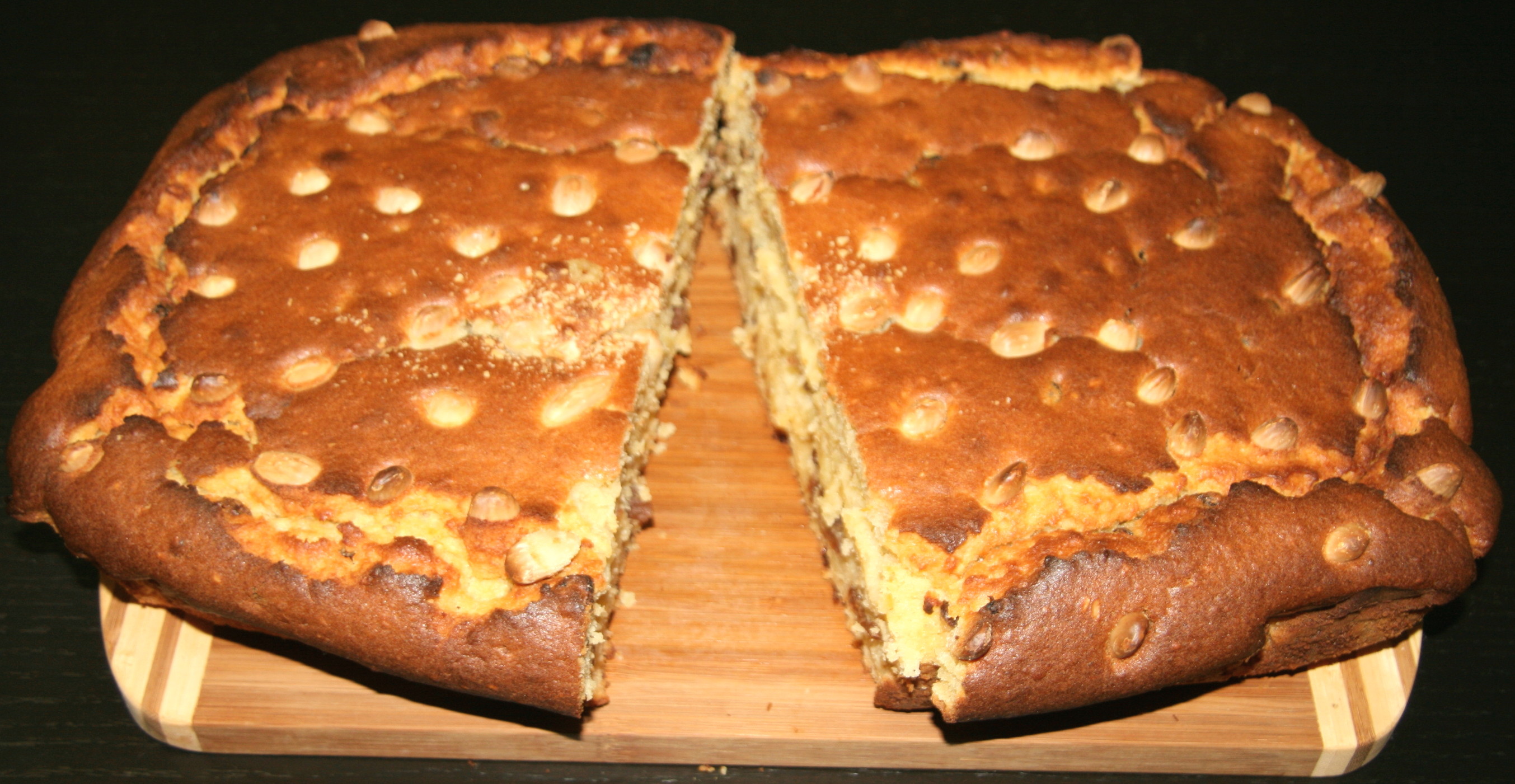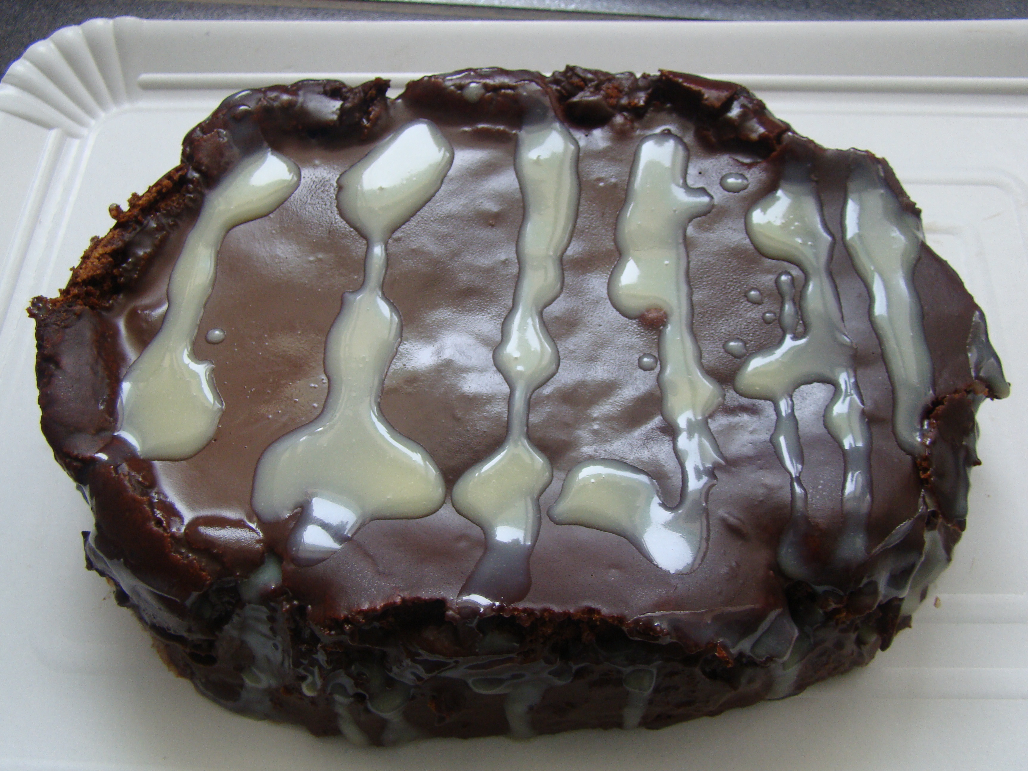 PREPARACIÓN: derretir el chocolate y la mantequilla,(en el microhondas) mezclar las yemas de huevo y el azúcar. añadir las nueces troceadas, las claras a punto de nieve y mezclar bien. Poner en un cuenco adecuado con papel vegetal en el horno a 160º durante 30 minutos. Es un brownie especial para celíacos, pero lo puede degustar todos.Decorado con chocolate blanco.