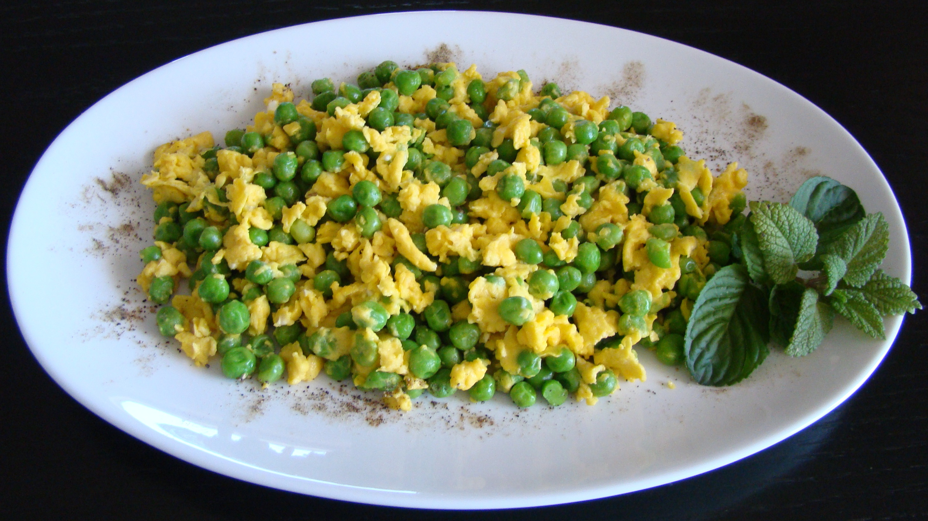 INGREDIENTES: 1/2 kilo de guisantes guisados, 6 huevos, 2 cucharas soperas de aceite de oliva, sal y pimienta negra al gusto.
