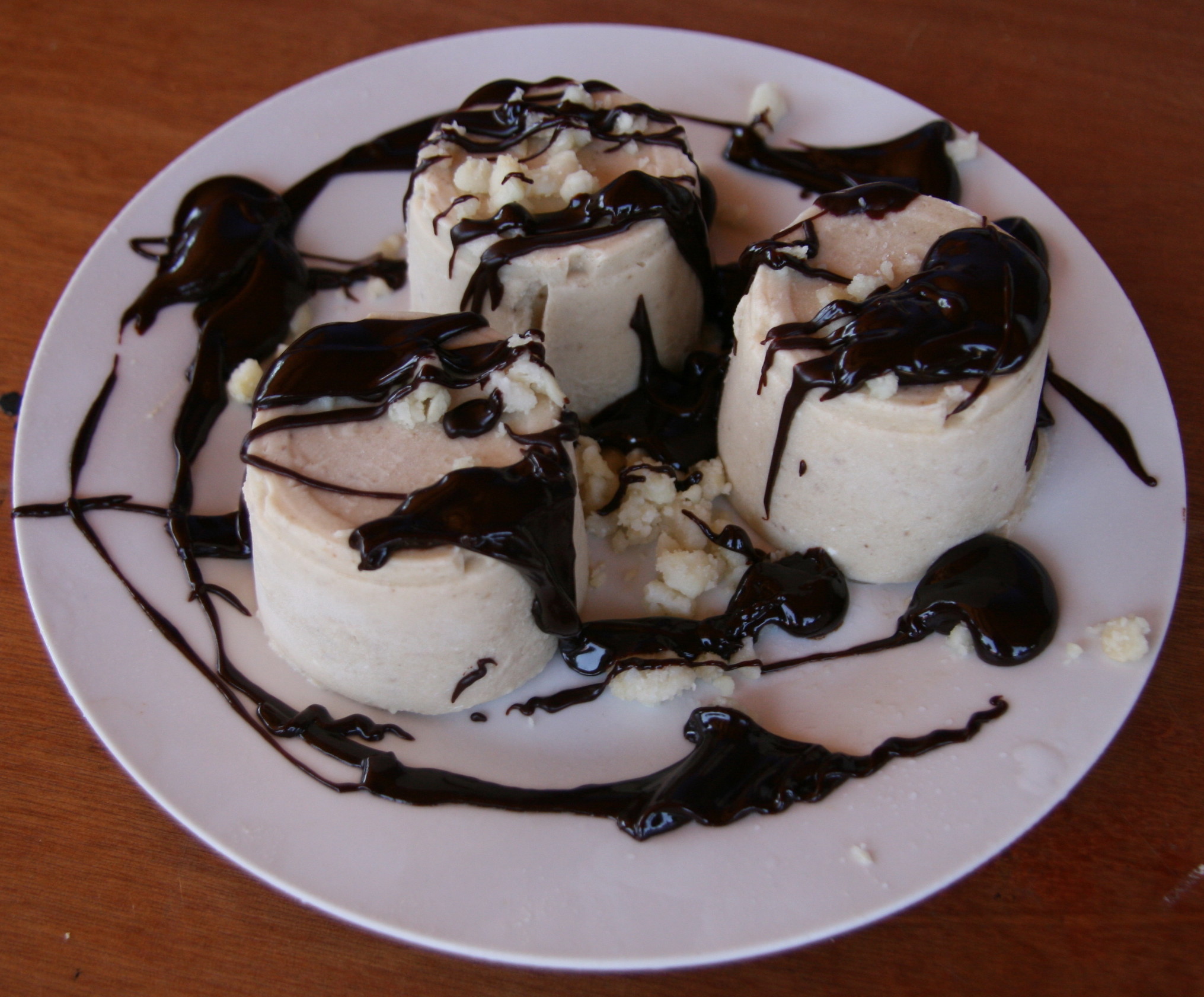 SUGERENCIA: para enfríar la mezcla de plátanos utilicé un bol con hielo (más rápido que el congelador). Para la salsa de chocolate también puedes utilizar miel (apta para celiacos): derrites el chocolate con la miel y luego le añades el agua que precise revolviendo bien.