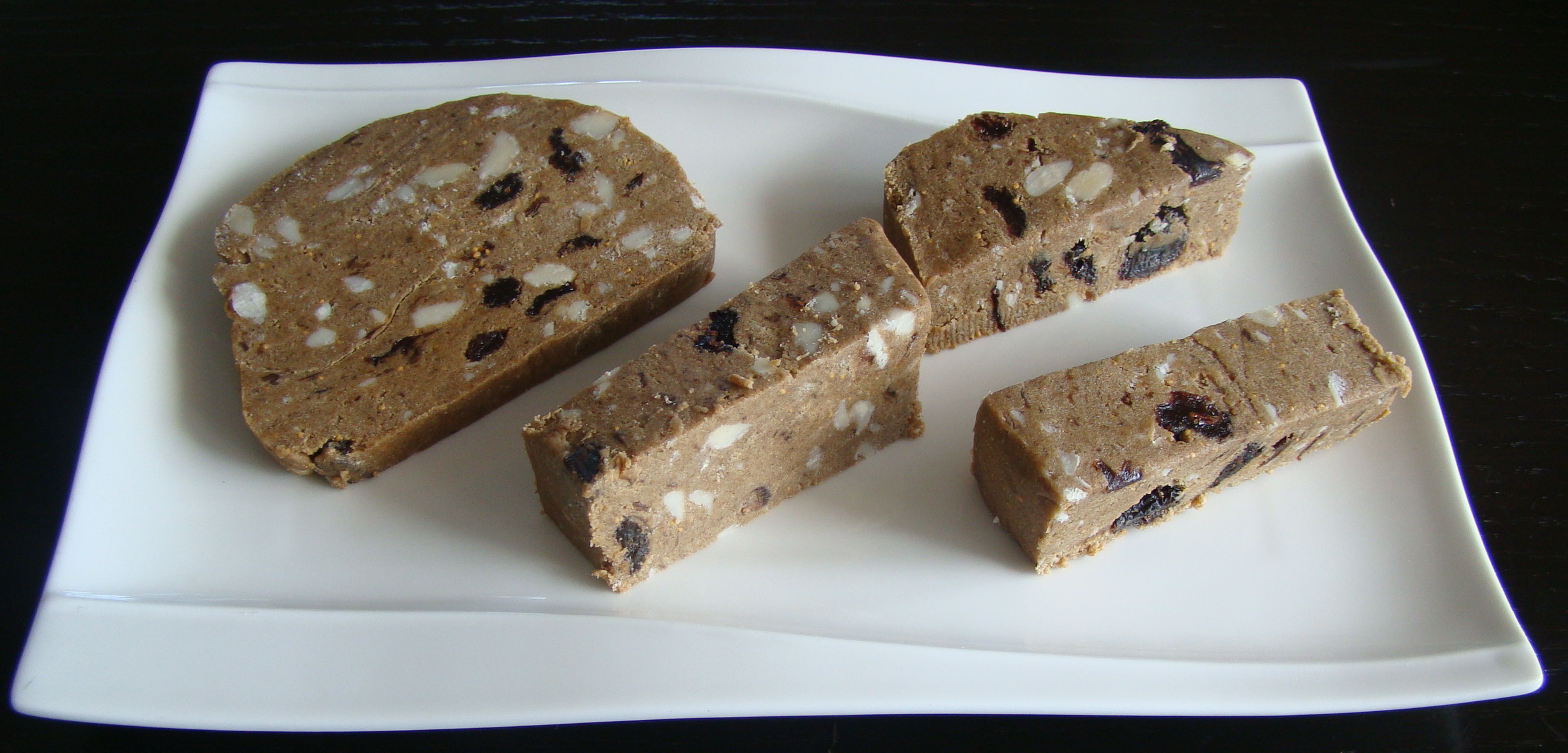 INGREDIENTES: medio kilo de gofio de millo, medio kilo de gofio de trigo, 1 kilo de miel, 250 gramos de higos pasados, 250 de gramos de pasas sin pipas, 250 gramos de almendras peladas, una cucharadita de café de granos de matalauva, ralladura de 1 limón (solo lo verde no llegar al blanco)