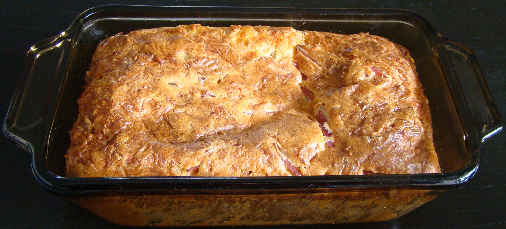 PREPARACIÓN: en un cuenco ponemos la leche, el aceite, los huevos y la harina mezclada con la levadura y batimos con la batidora hasta que quede una masa cremosa. Añadimos el queso rallado, jamón picado en tiras finas y la mitad de las nueces escachadas y mezclamos. Ahora engrasamos el molde con una pizca de aceite y espolvoreamos con pan rallado. Ponemos un poco de masa en el fondo del molde, agregamos un poco de queso emmental y el resto de las nueces y añadimos el resto de la masa. Ponemos al horno, previamente calentado, a 160ºC durante 20 minutos; pasado esté tiempo, subimos la temperatura a 180ºC durante 10 minutos más y sacamos.