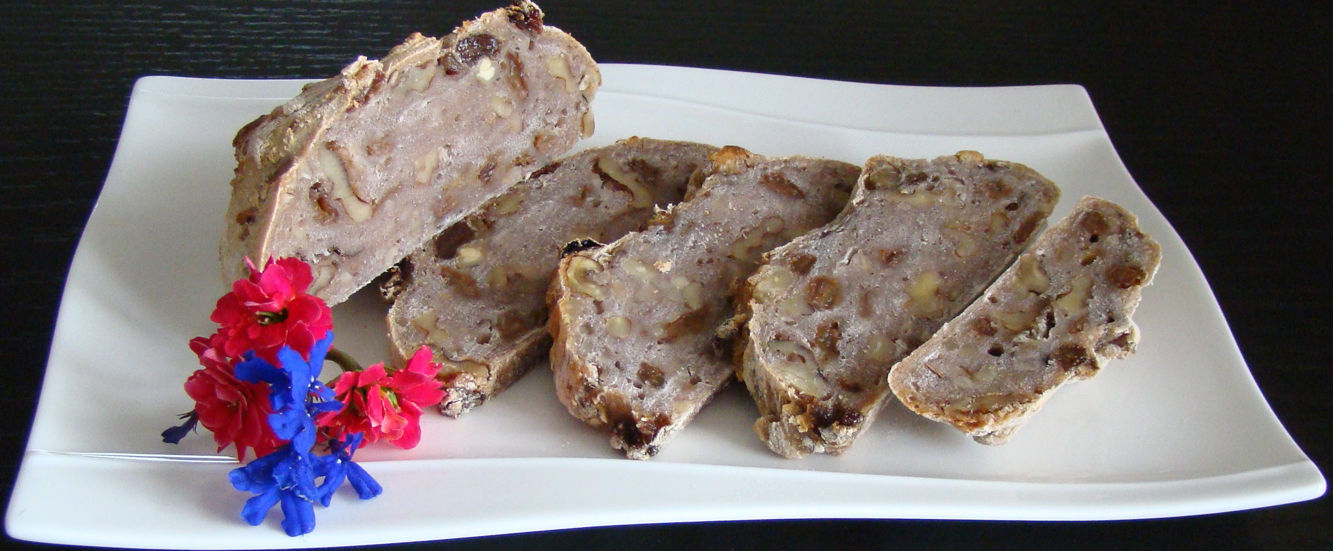 INGREDIENTES: 500 gramos de harina, 300 ml de agua, 2 sobres de levadura seca, 50 gramos de nueces, 25 gramos de avellanas, 25 gramos de pasa moscatel.