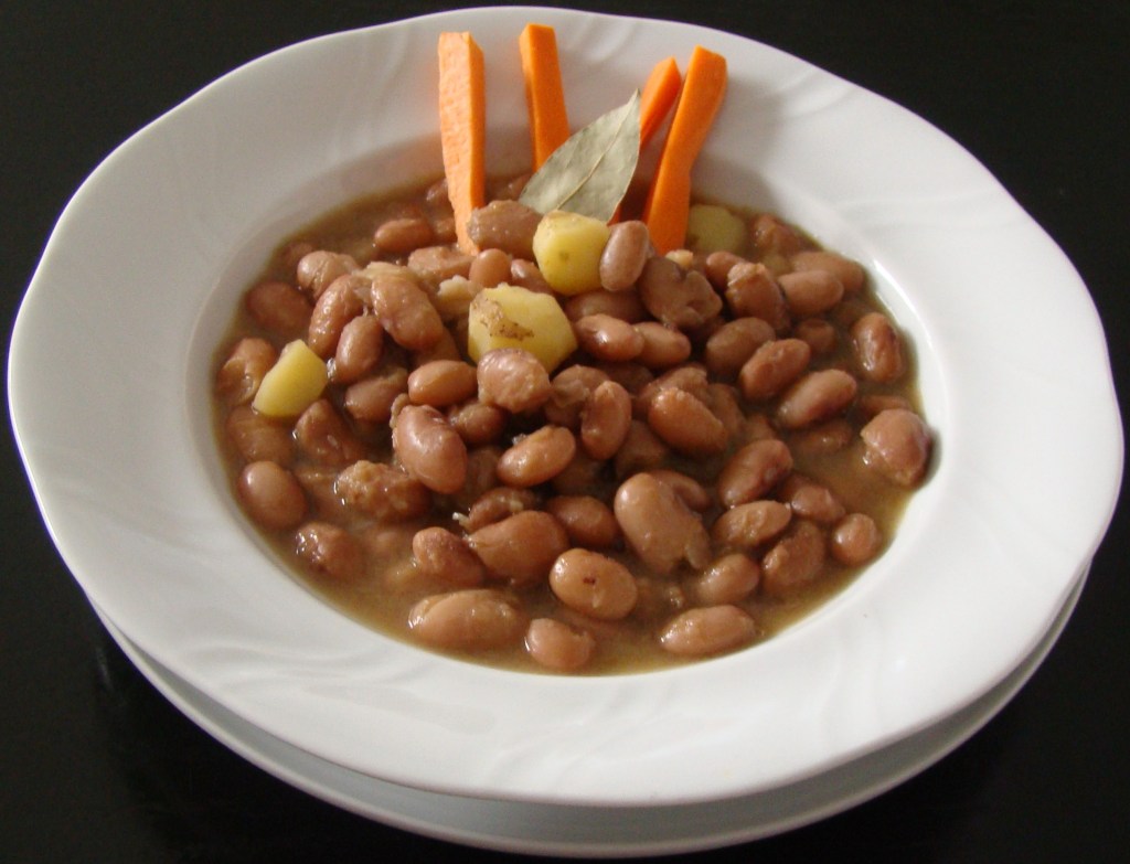 INGREDIENTES: 150 gramos de judías pardas, 1 cebolla blanca, 1/2 puerro, 1 ajo, 2 cucharadas de aceite de oliva virgen, 2 cucharadas de güisqui, 12 papas bonitas pequeñitas, 1 zanahoria y sal al gusto.