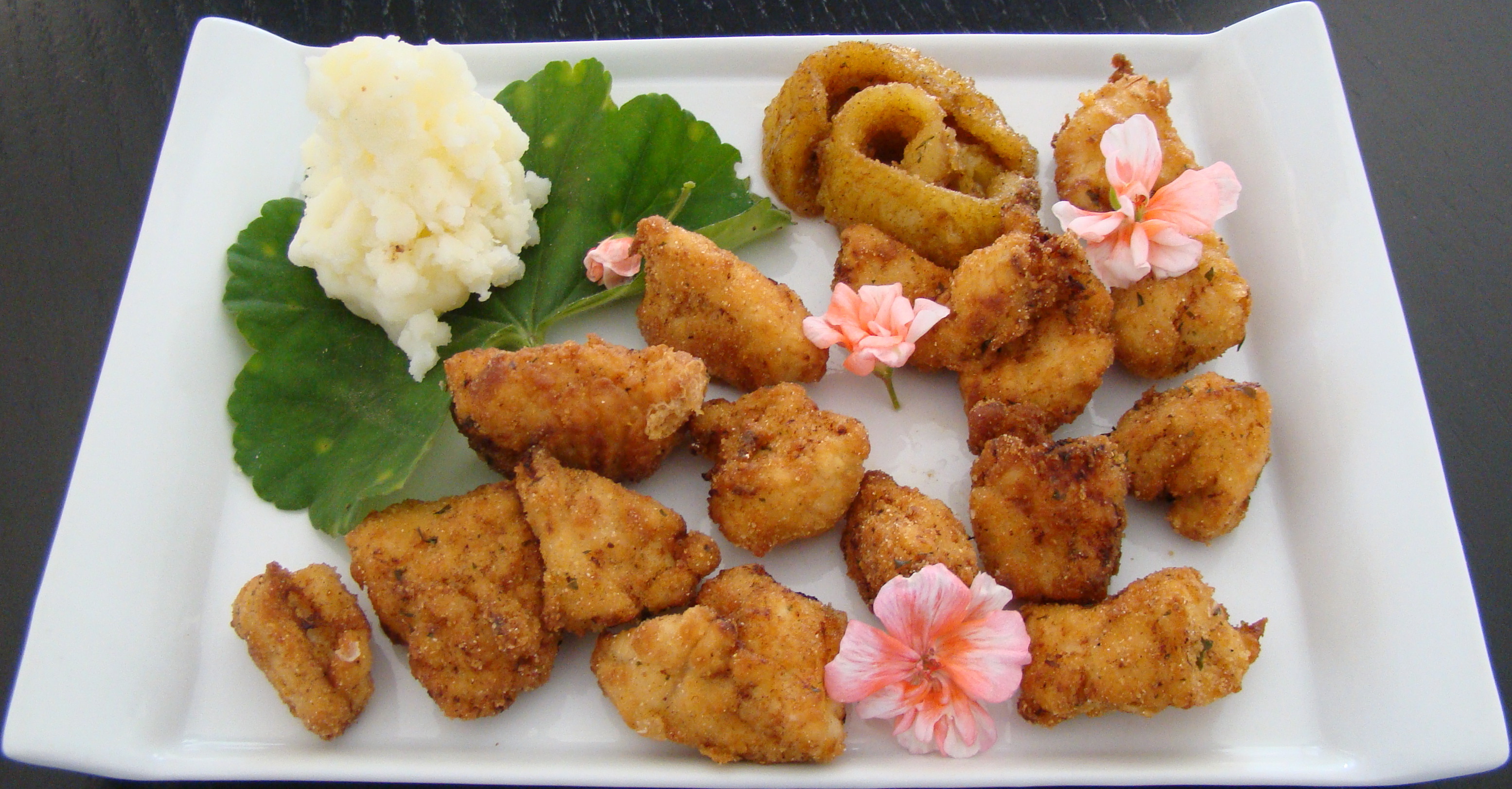 PREPARACIÓN: cortamos la pechuga en trocitos pequeños y reservamos. En un cuenco ponemos: el yogur, la miel, la mostaza, el zumo de limón y el aceite, mezclamos y añadimos el pollo, mezclamos y dejamos toda la noche en maceración en la nevera. Extraemos los trozos de pechuga uno a uno y escurrimos, pasamos por harina, pan rallado y freímos. Podemos acompañar con puré de papas y plátanos fritos.