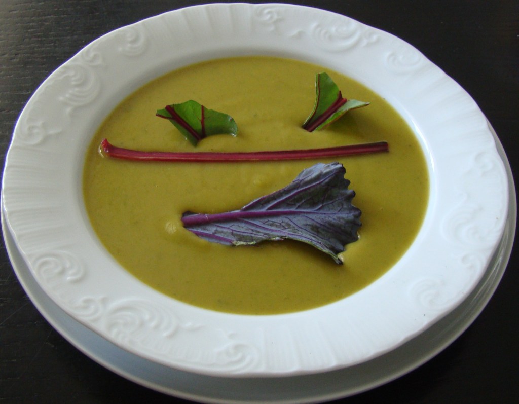 PREPARACIÓN: en un caldero adecuado sofreímos en el aceite la cebolla y los ajos troceados. Añadimos las papas y la zanahoria troceadas y agua, la justa para que casi las cubra. Llevamos a ebullición y luego guisamos 30 minutos a fuego medio-bajo. Ahora les quitamos las hebras a las hojas de la remolacha y las troceamos. Las incorporamos, troceadas y quitada las hebra, y la sal 12 minutos más de cocción apartamos y trituramos.