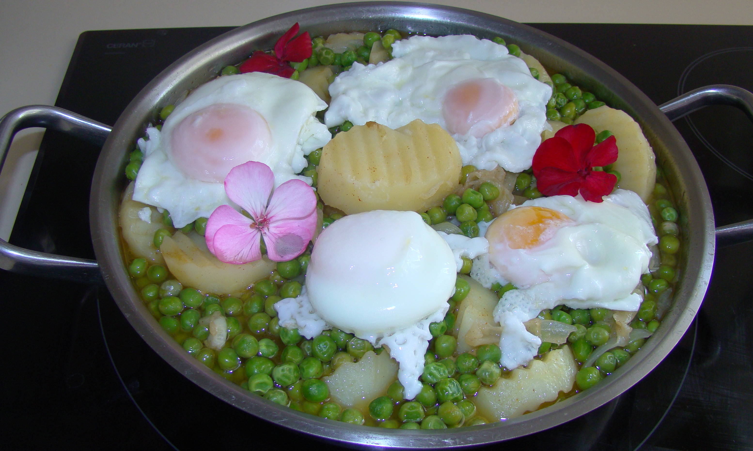 PREPARACIÓN: hacemos un sofrito con la cebolla, ajos y pimiento. Añadimos las papas, removemos añadimos 1/2 vaso de agua y guisamos aproximadamente durante 15 minutos. Comprobamos que las papas estén guisadas pinchándolas con un tenedor. Apartamos y añadimos el azafrán.