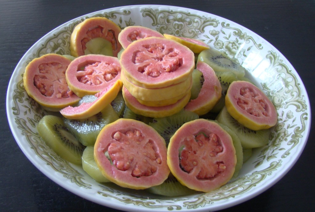 PREPARACIÓN: pelamos los kiwis y el plátano y cortamos en rodajas. Lavamos y cortamos la guayaba, añadimos el zumo del limón y guardamos en la nevera al menos una hora antes de servir.