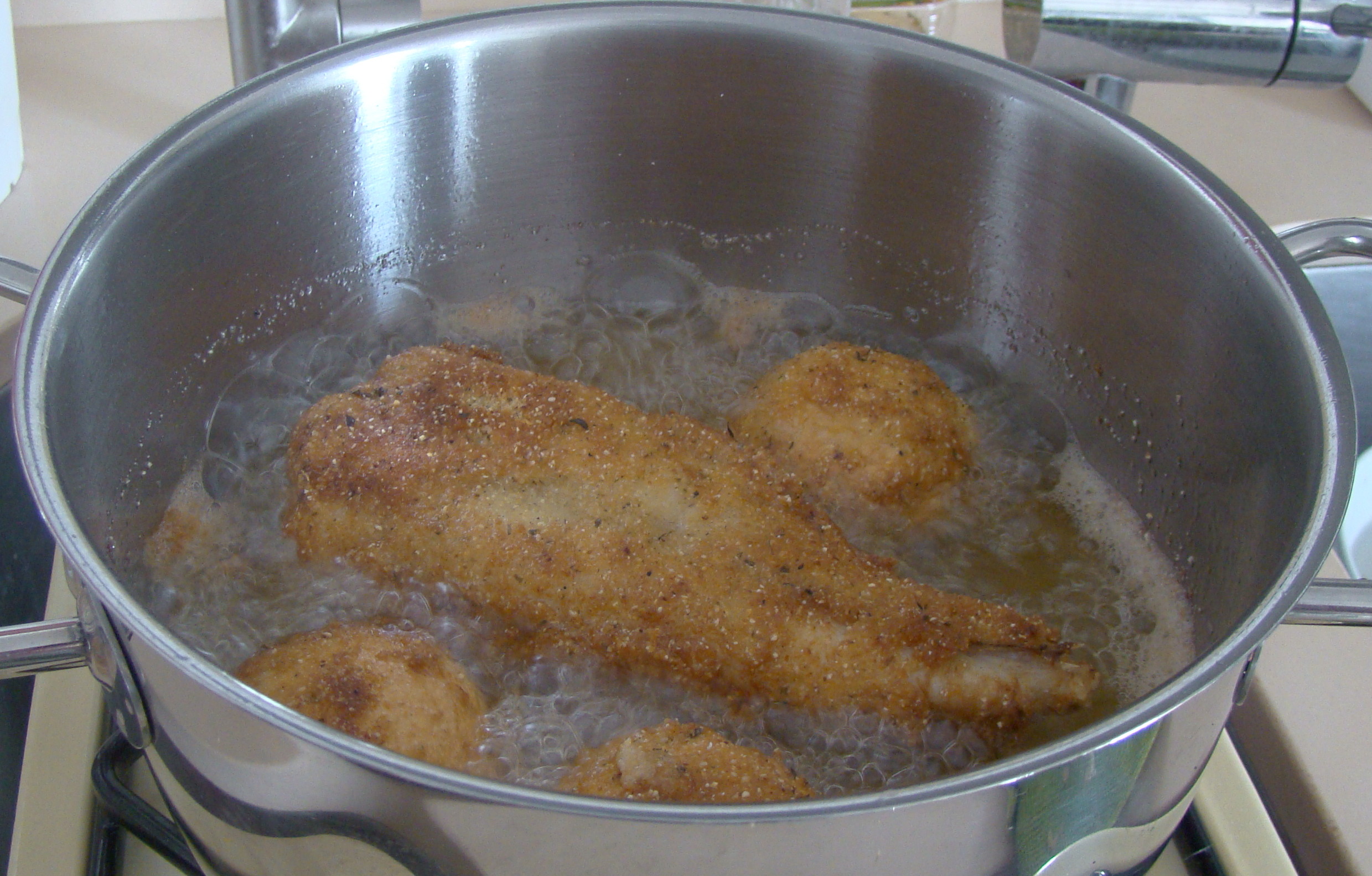 PREPARACIÓN: limpiamos los champiñones con servilleta de papel sin utilizar agua y reservamos. Ponemos en un plato hondo, el pan rallado, la sal, la pimienta, el tomillo, orégano y mezclamos. Batimos el huevo, pasamos el rape por huevo, por la mezcla que hemos hecho y freímos junto con los champiñones a los que le quitamos el pie que freímos también.