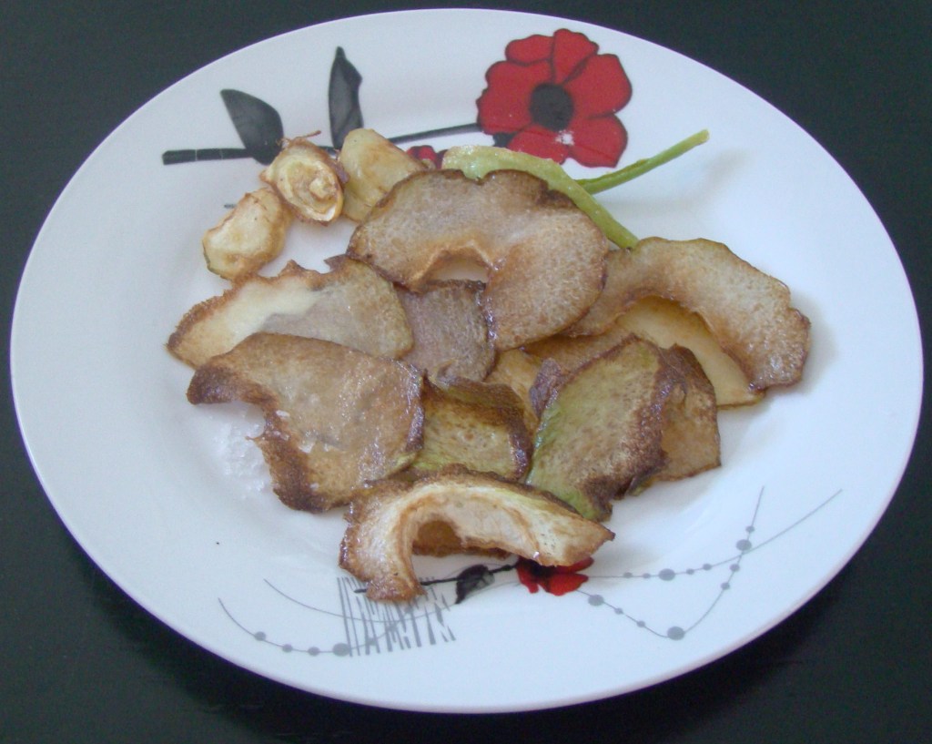 PREPARACIÓN: pelamos las chayotas y cortamos en laminas muy finas, freímos y añadimos la sal al momento de servir.