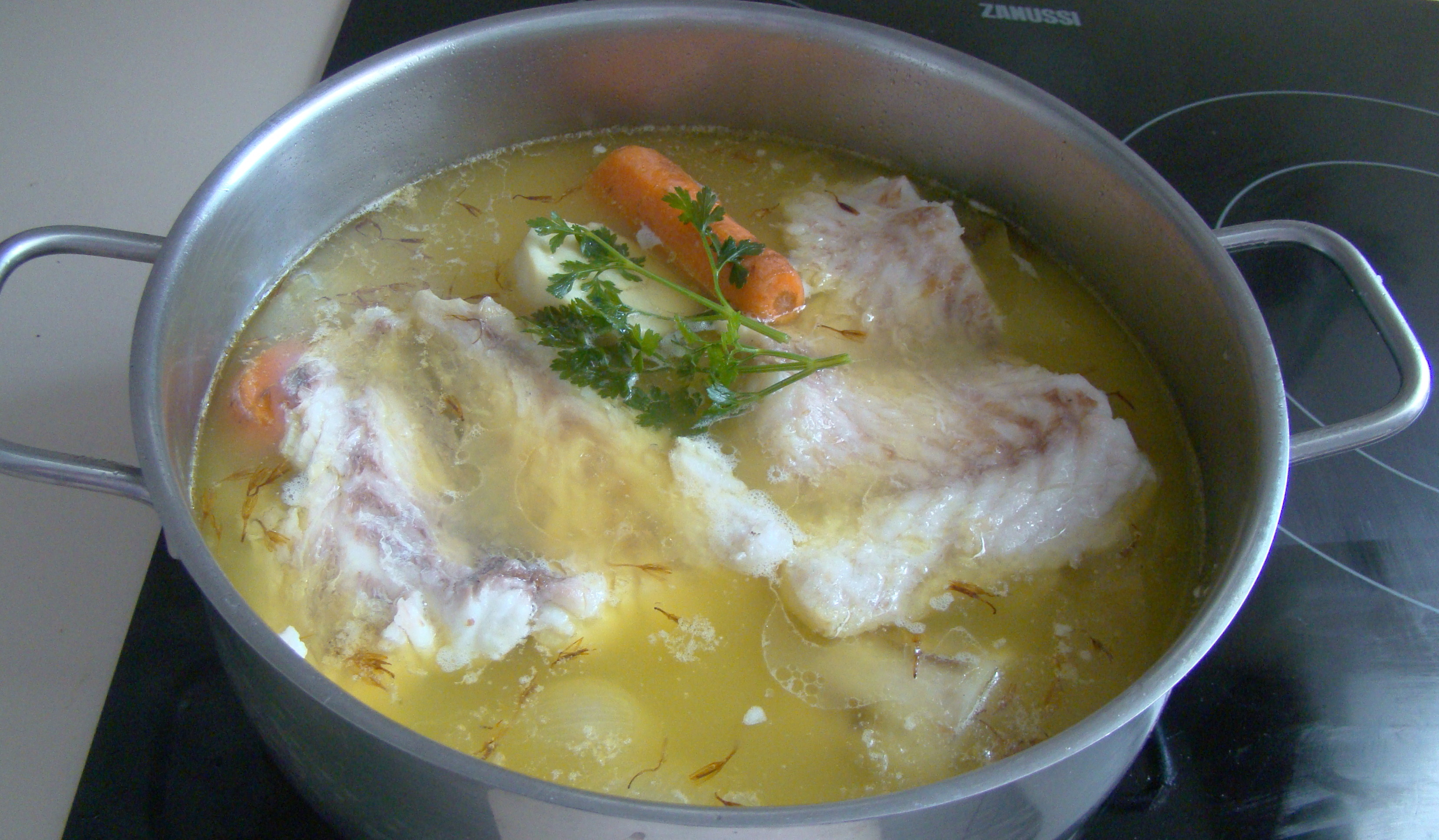 INGREDIENTES: 1 trozo de pescado salado, 2 papas, un manojo pequeño de perejil, 2 hojas de zanahorias, 4 ajos, 1 trocito pequeño de pimienta picona, 2 cucharadas de agua, 3 cucharadas de aceite de oliva virgen y 1 cucharadita de sal.