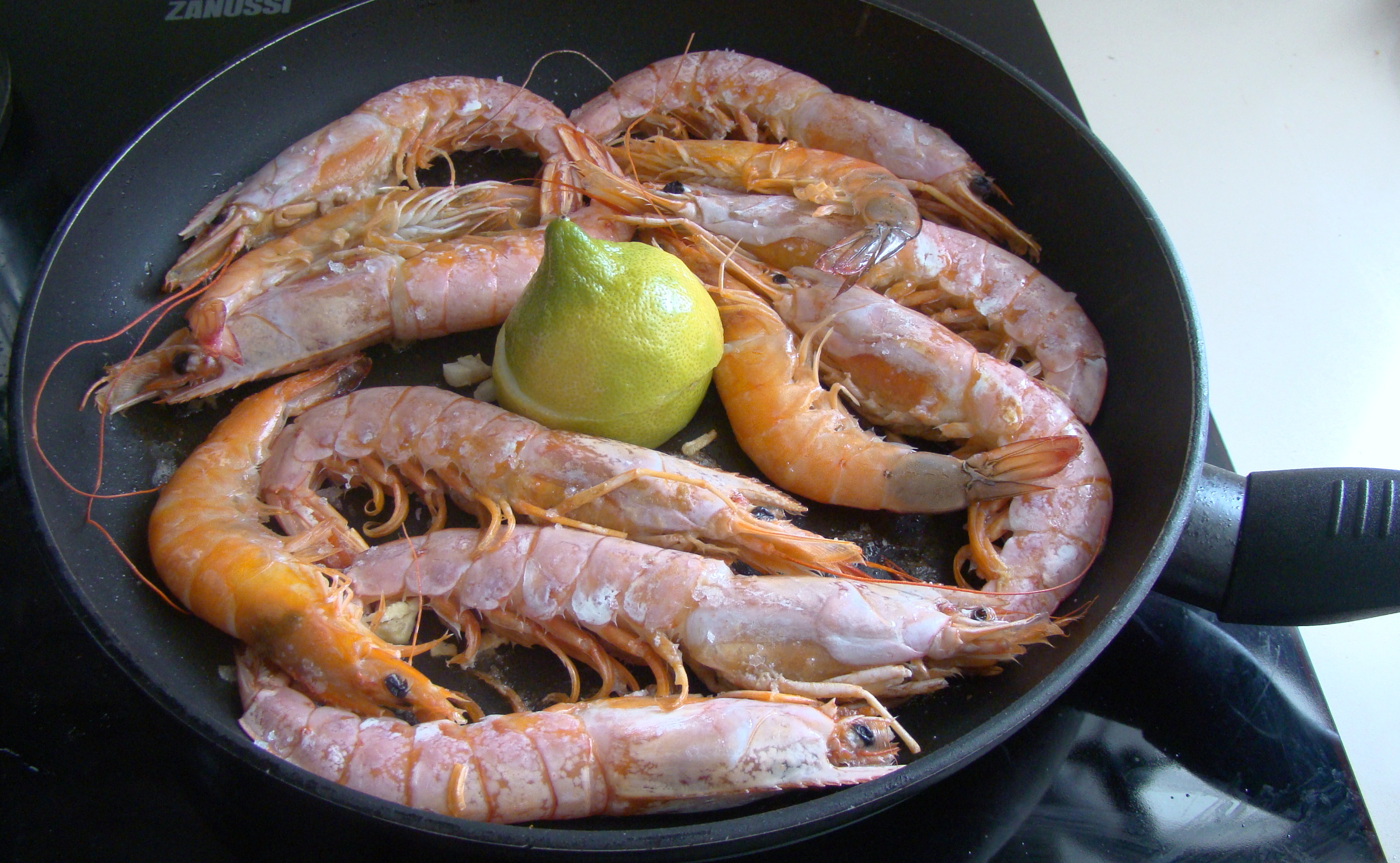 INGREDIENTES: 8 gambones, 4 gambas, 1 cucharadita de aceite de oliva virgen y 1 cucharadita de sal.