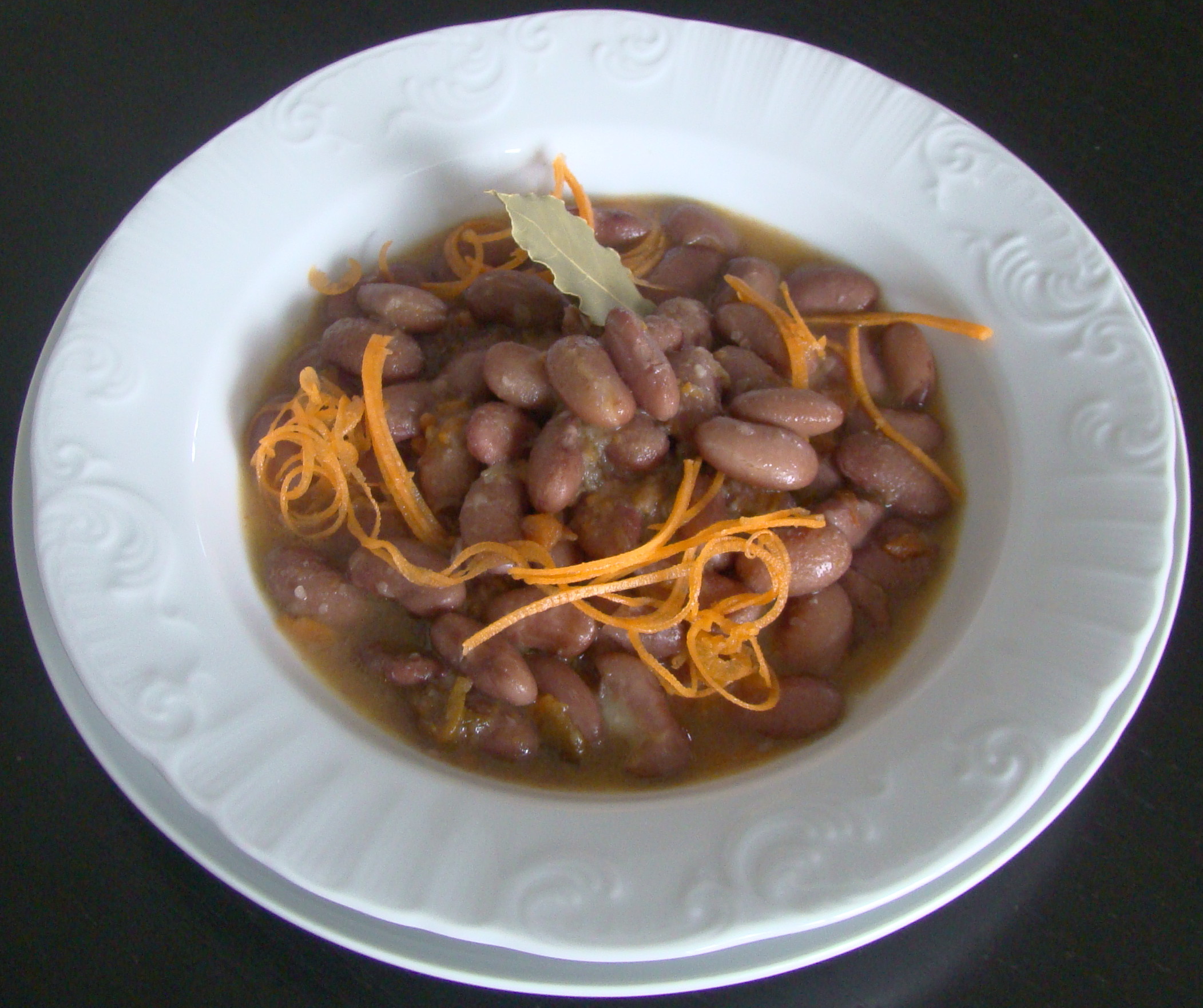 PREPARACIÓN: lavamos y ponemos en remojo las judías la noche anterior. Hacemos un sofrito con los ajos, puerro, pimiento, cebolla y trituramos. Apartamos y añadimos el pimentón y la zanahoria. Escurrimos las judías, las ponemos en un caldero, añadimos el sofrito, la sal, removemos y añadimos agua que las cubra. En caso que necesitemos añadir agua, lo haremos con agua del tiempo en pequeñas cantidades. Ponemos a fuego medio durante unos 40 minutos. Comprobar que estén hechas antes de apartar
