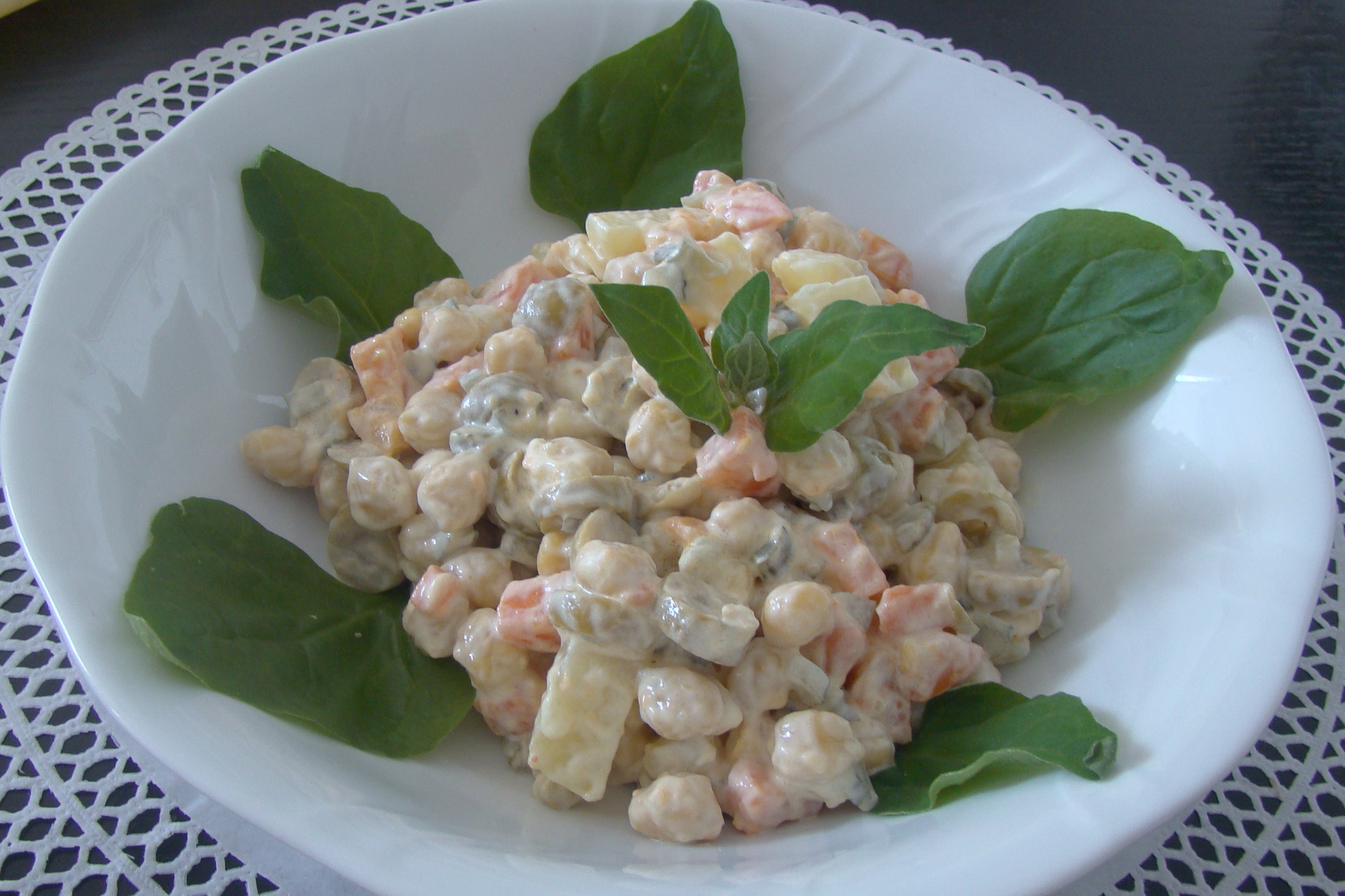 PREPARACIÓN: ponemos en remojo los garbanzos la noche anterior. Guisamos y cuando estén fríos vamos añadiendo todos los ingredientes troceados, mezclamos, añadimos la mayonesa y volvemos a mezclar.