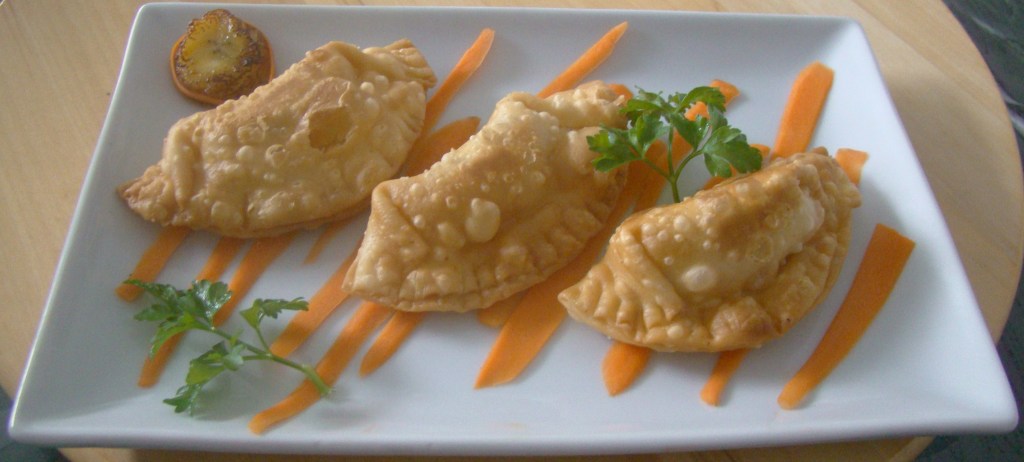 PREPARACIÓN: mezclamos el cabello de ángel con el jamón muy picadito, añadimos las laminas de almendras, mezclamos, rellenamos las obleas, sellamos con un tenedor y freímos.