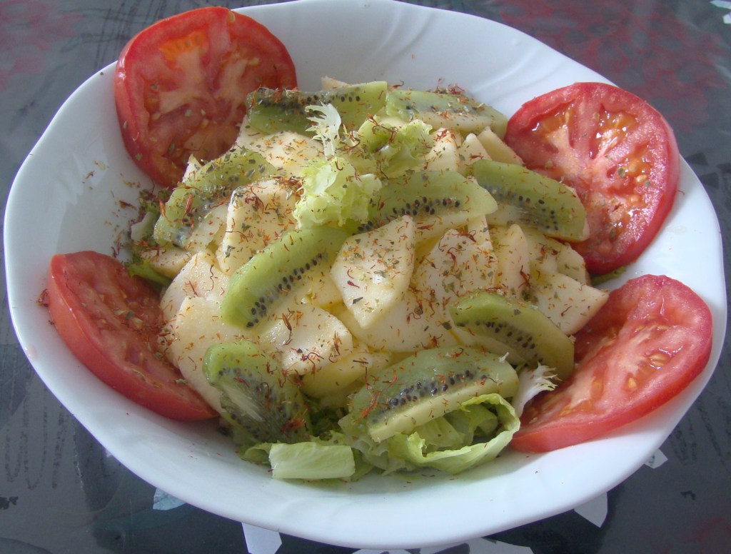INGREDIENTES: 1 manzana, fresas, 2 yogur natural y miel de la gomera.