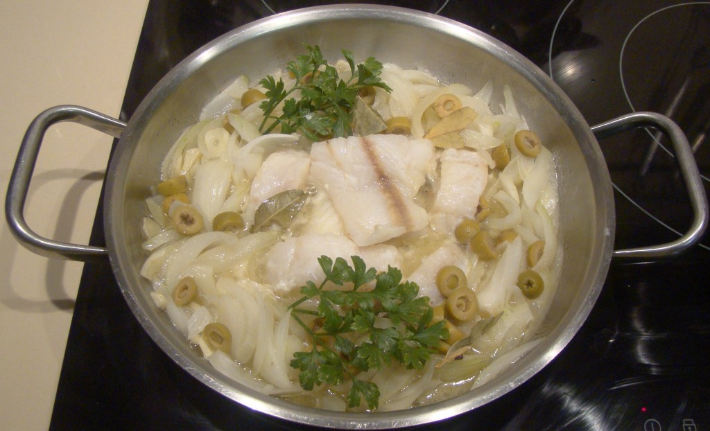 PREPARACIÓN: ponemos el aceite en un caldero plano. Cuando esté caliente, añadimos los ajo picaditos y las cebollas a la juliana y las pochamos. Añadimos el brandy, dejamos que rompa el hervor, y bajamos el fuego para añadir la merluza cortadita en trocitos. Damos unos minutos de cocción, apartamos y dejamos reposar 5 minutos antes de servir.