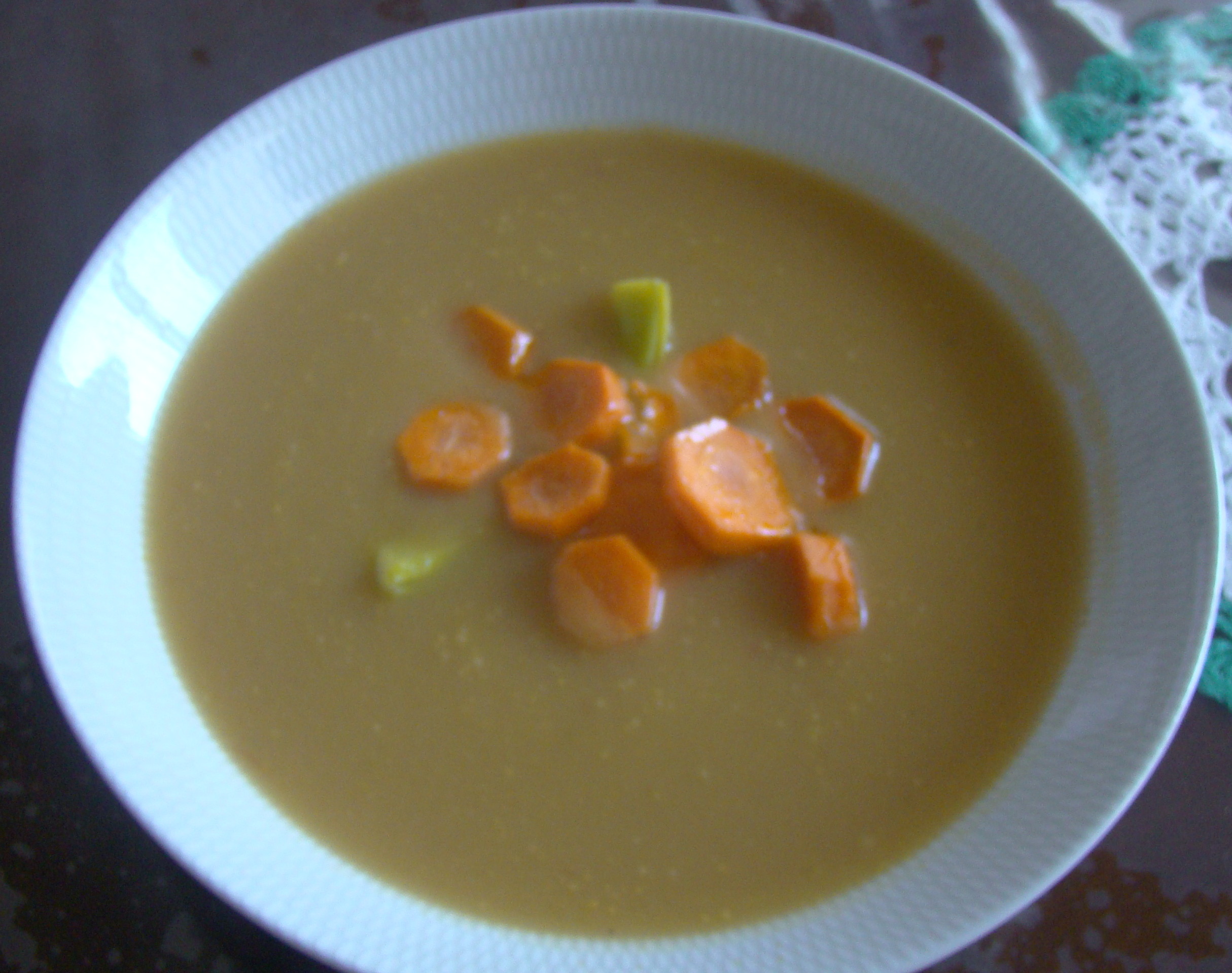 PREPARACIÓN: hacemos el sofrito con el aceite, la cebolla y los ajos. Añadimos el resto de verduras y las papas, cubrimos con el agua justa y sal al gusto y llevamos al hervor. Con 20 minutos de cocción a fuego medio, añadimos el azafrán. Apartamos y trituramos .Dejamos media zanahoria, para azar en la sartén y ponerla en rodajas en el momento de servir.