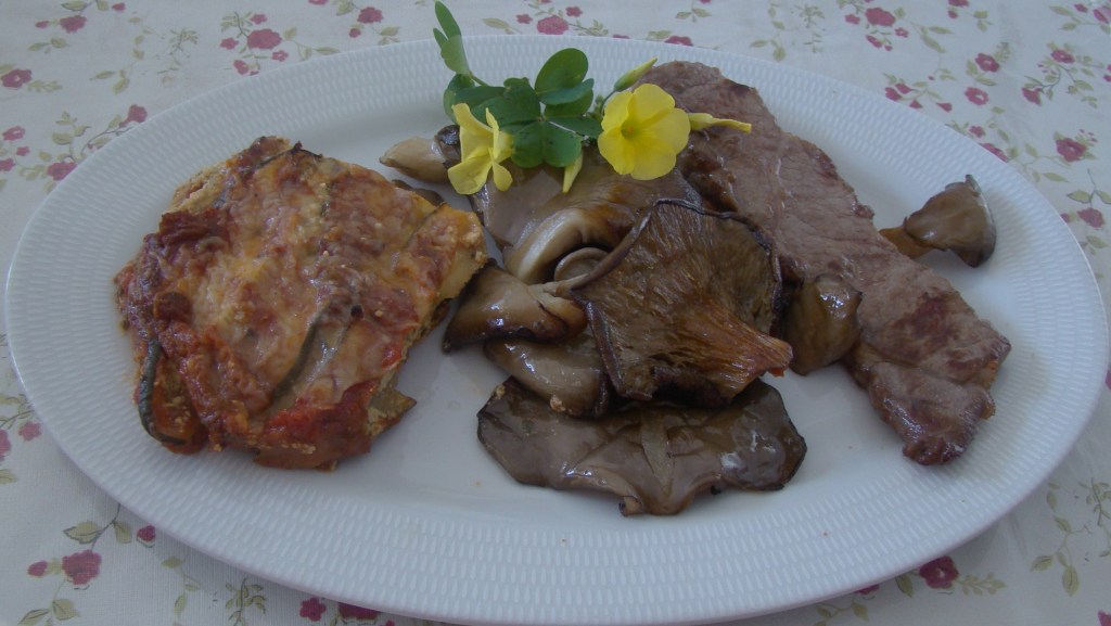 INGREDIENTES: 2 calabacines, 150 gramos de carne de res y150 gramos de cochino, 4 dientes de ajo, 1 cucharada de aceite de oliva, queso gouda, cúrcuma, pimienta blanca , pimienta negra, tomillo seco y orégano.