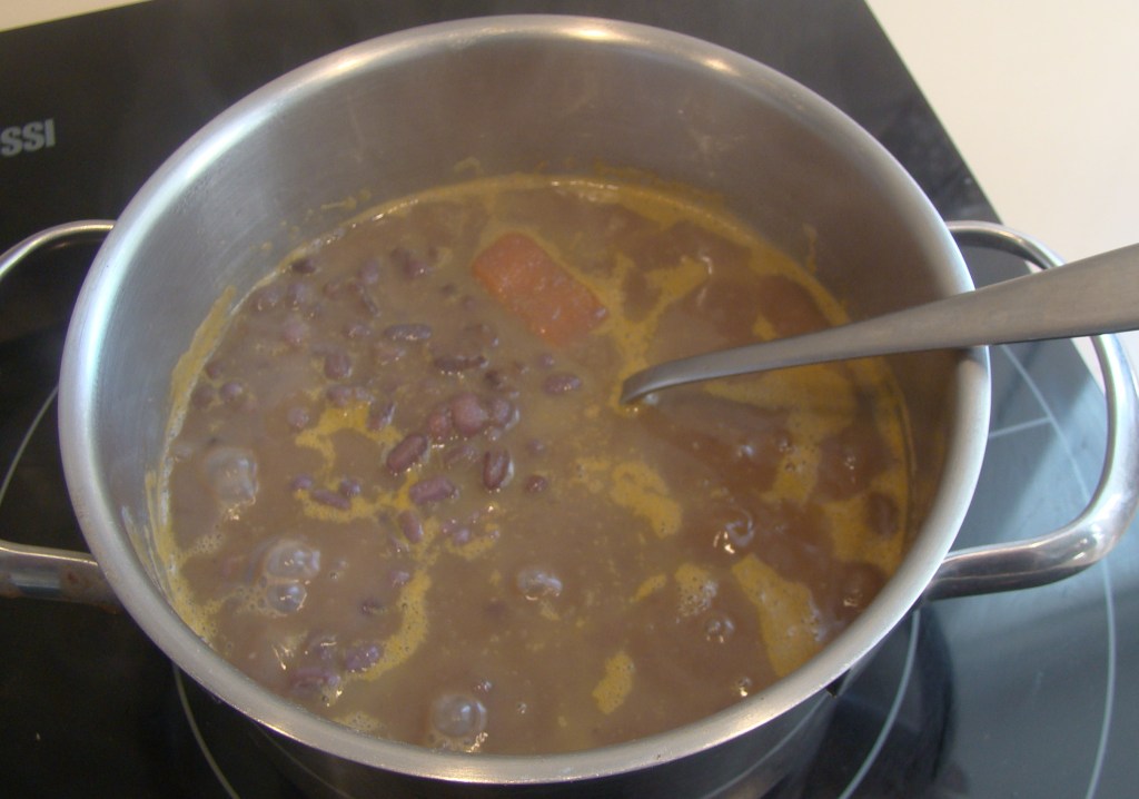 PREPARACIÓN: lavamos y ponemos las lentejas en remojo mientras preparamos lo ingredientes. Pelamos la calabaza y la zanahoria y troceamos y picamos la cebolla y los ajos. Hacemos un sofrito, cuando esté pochadito, escurrimos incorporamos las lentejas y las rehogamos 2 minutos. Luego añadimos agua que las cubra 2 dedos más, la sal al gusto, el trozo de calabaza y la mitad de la zanahoria entera y la otra mitad en rodajas. Llevamos al hervor y luego mantenemos a fuego medio entre 25-45 minutos según el tiempo de remojo.