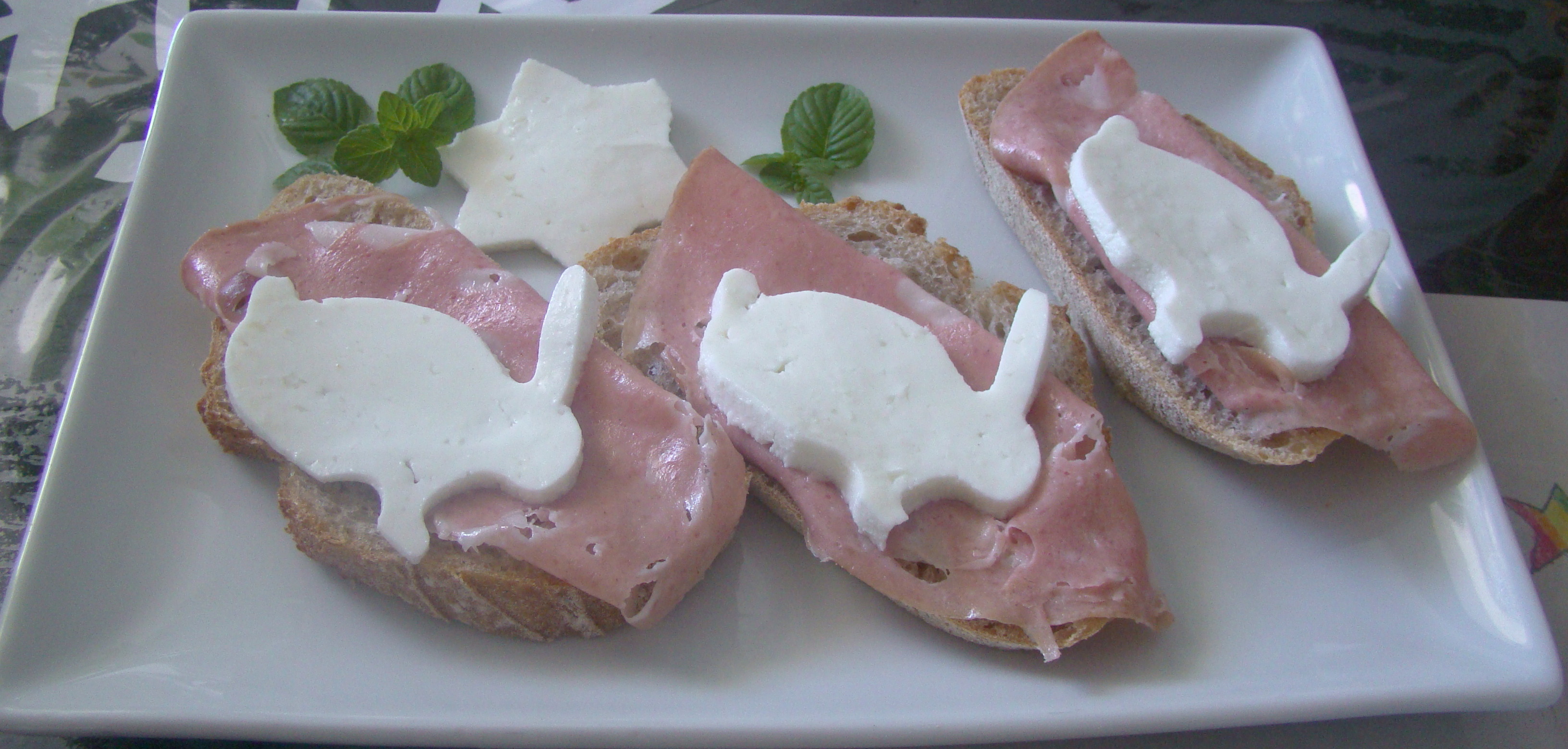 INGREDIENTES: pan, mantequilla, queso de cabra, mortadela.
