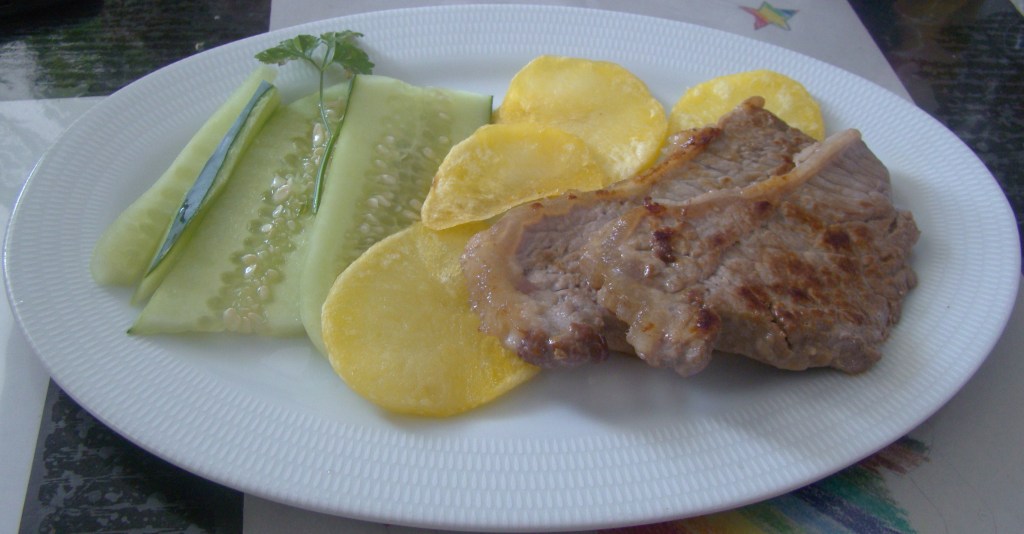 INGREDIENTES: 2 papas, 2 entrecot y 1 pepino.