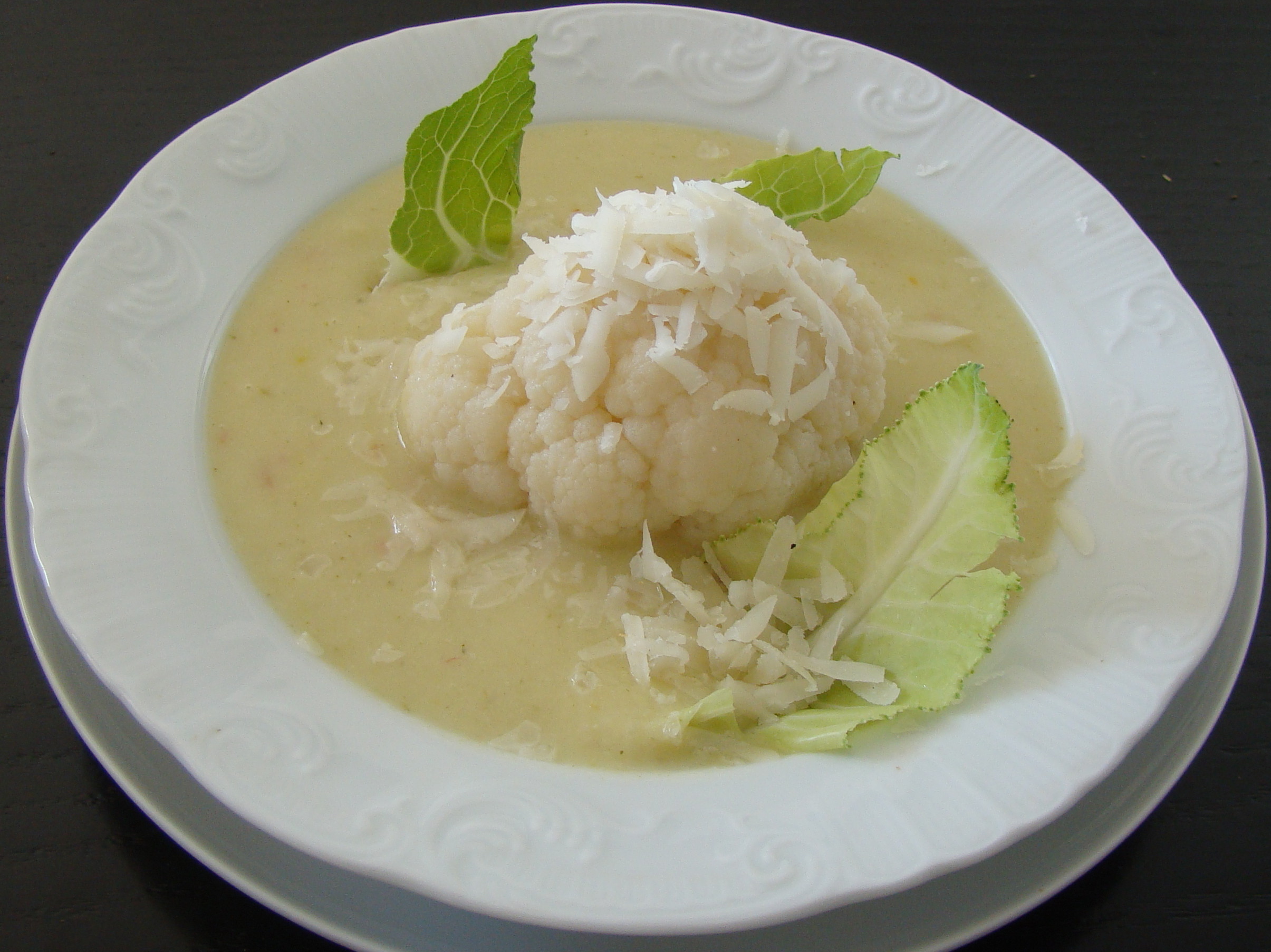 PREPARACIÓN: ponemos el aceite en un caldero adecuado, añadimos los ajos pelados y picados, la coliflor (lo hemos separado en trozos y lavado previamente), las papas peladas y troceadas y empezamos la cocción. Añadimos sal al gusto y, en 20 minutos apartamos y trituramos.