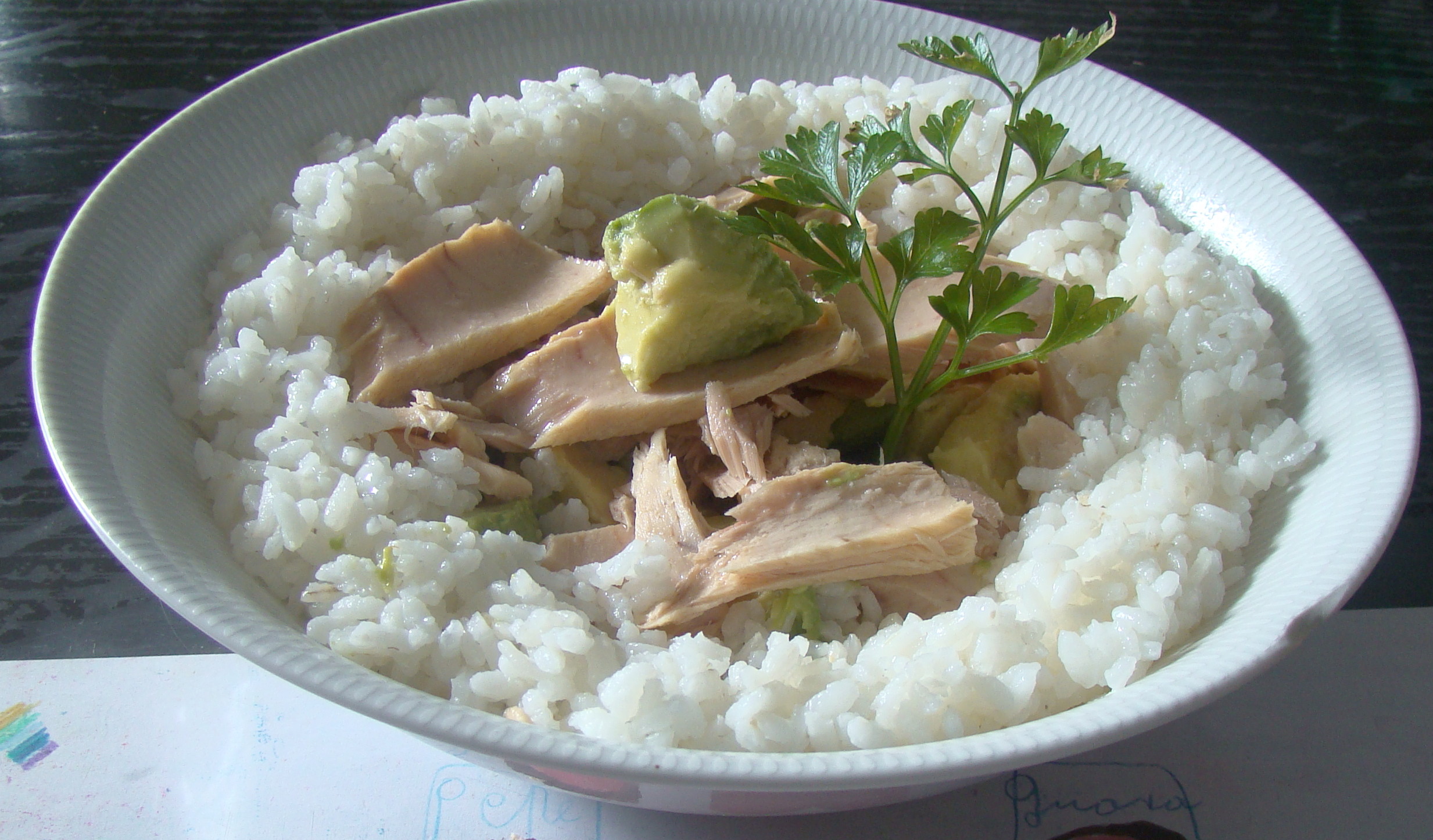 PREPARACIÓN: hacemos el arroz, partimos en trocitos el aguacate, añadimos el bonito con un poquito de aceite y vinagre de vino.