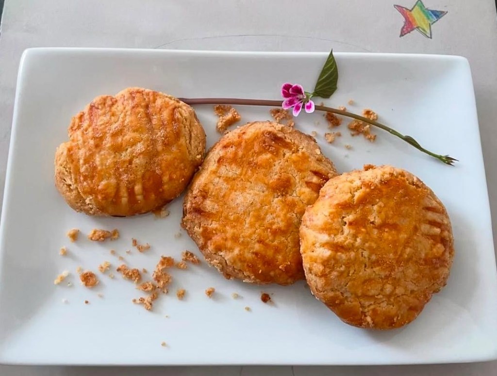 INGREDIENTES: 500 gramos de harina, 250 gramos de manteca de cerdo, 6 yemas de huevo, 100 gramos de azúcar, 2 claras de huevo con un poco de azúcar.