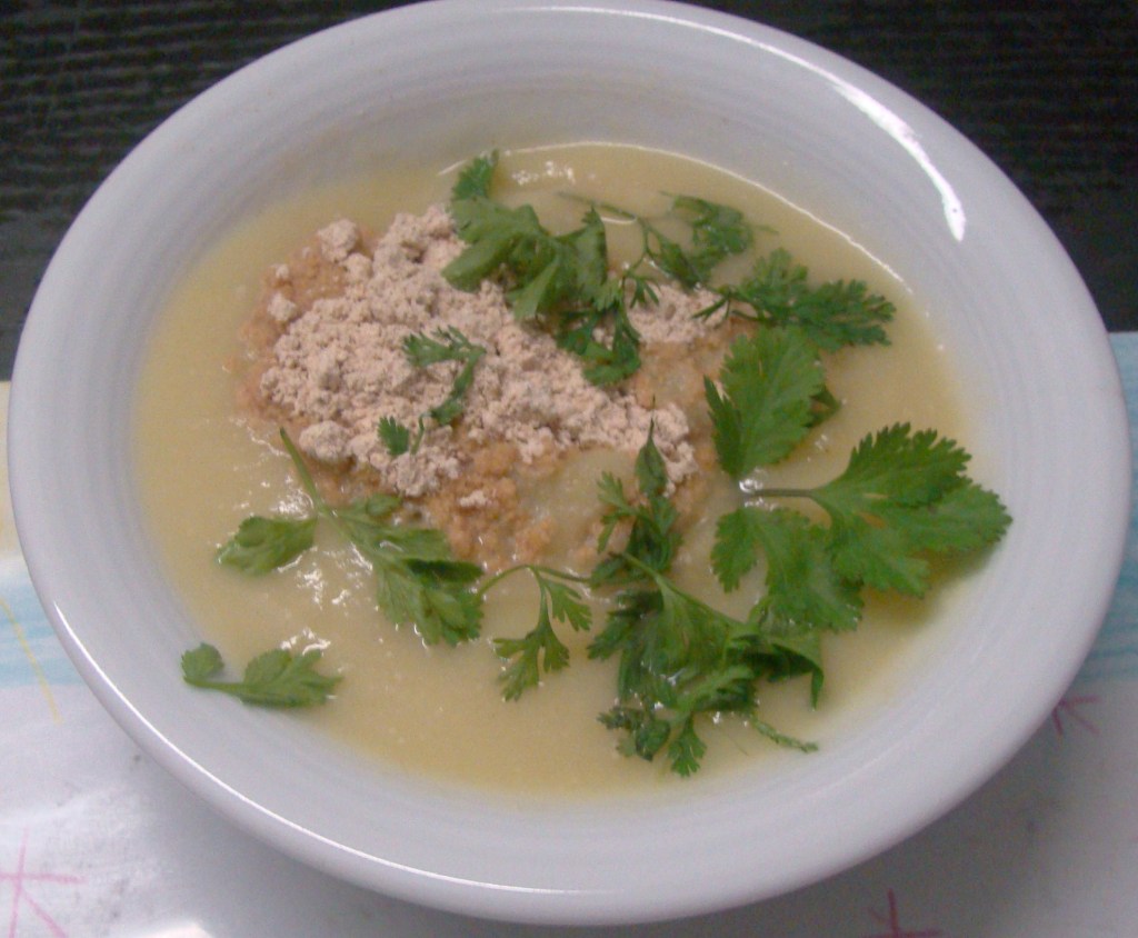 PREPARACIÓN: hacemos un sofrito con los ajos y la cebolla, sin quitar del fuego añadimos el resto de ingredientes cortados en trozos. Seguimos la cocción veinte minutos apartamos trituramos , al momento de servir ponemos unas hojas de perejil, cilantro y el gofio..