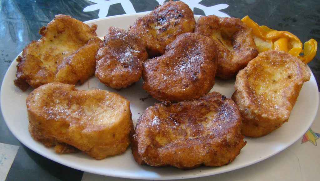 INGREDIENTES: 1 pan con matalahúva, 2 claras de huevo, aceite de millo para freírlas y azúcar al gusto.