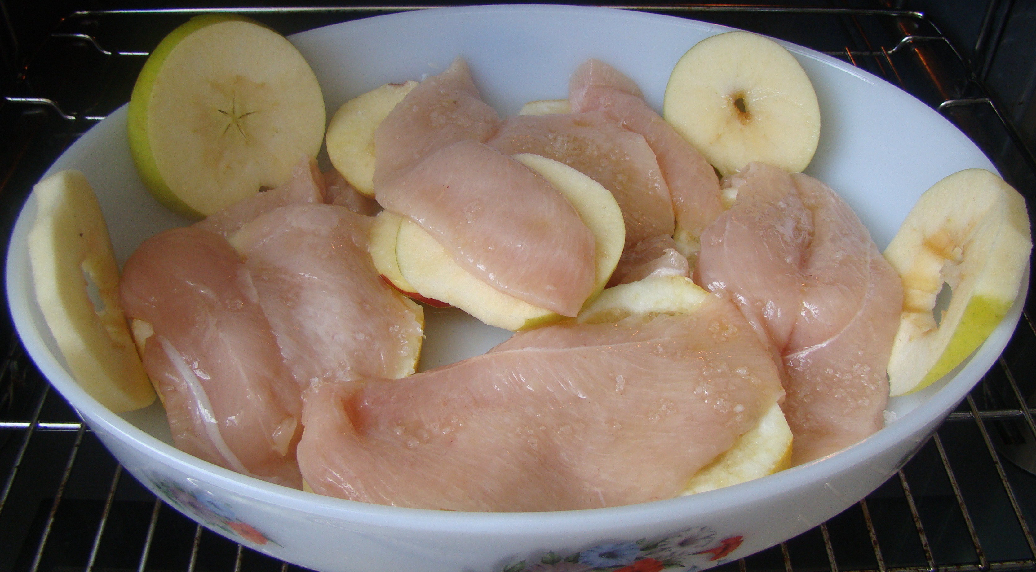 INGREDIENTES: pechuga, 2 manzanas verdes, 1 limón, 1 cucharada de aceite de oliva y sal al gusto.