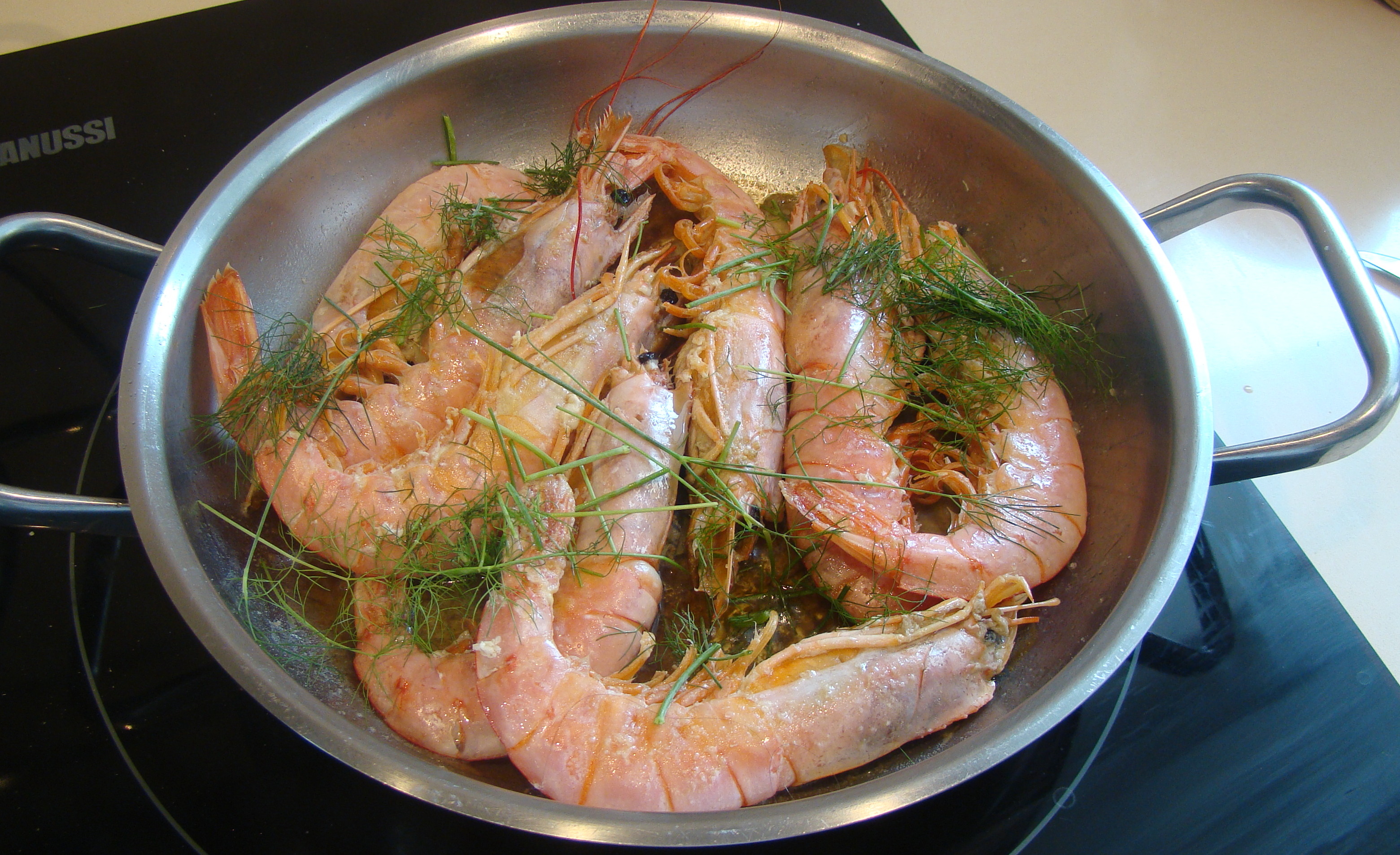 INGREDIENTES: gambón, unas ramitas de cilantro, una cucharadita de aceite de oliva y la sal al gusto.