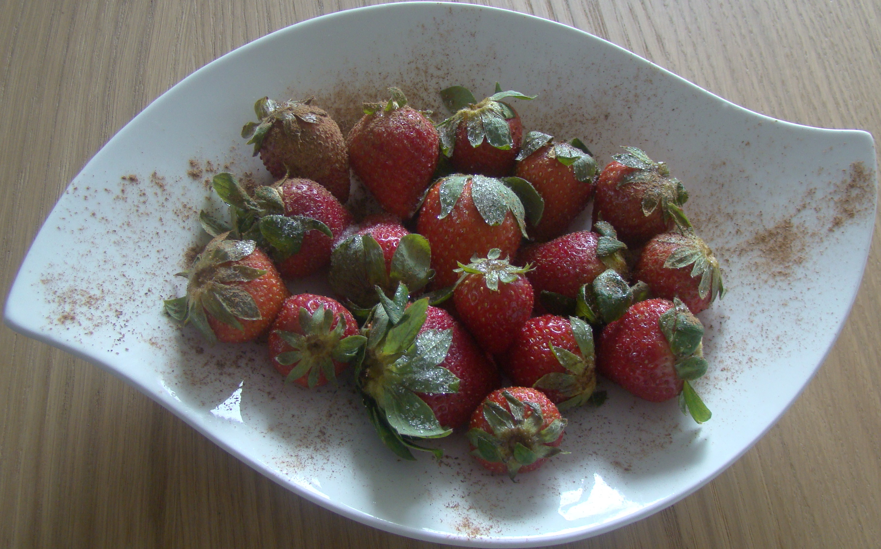 INGREDIENTES: fresas, canela en polvo y un fisquito de azúcar morena.