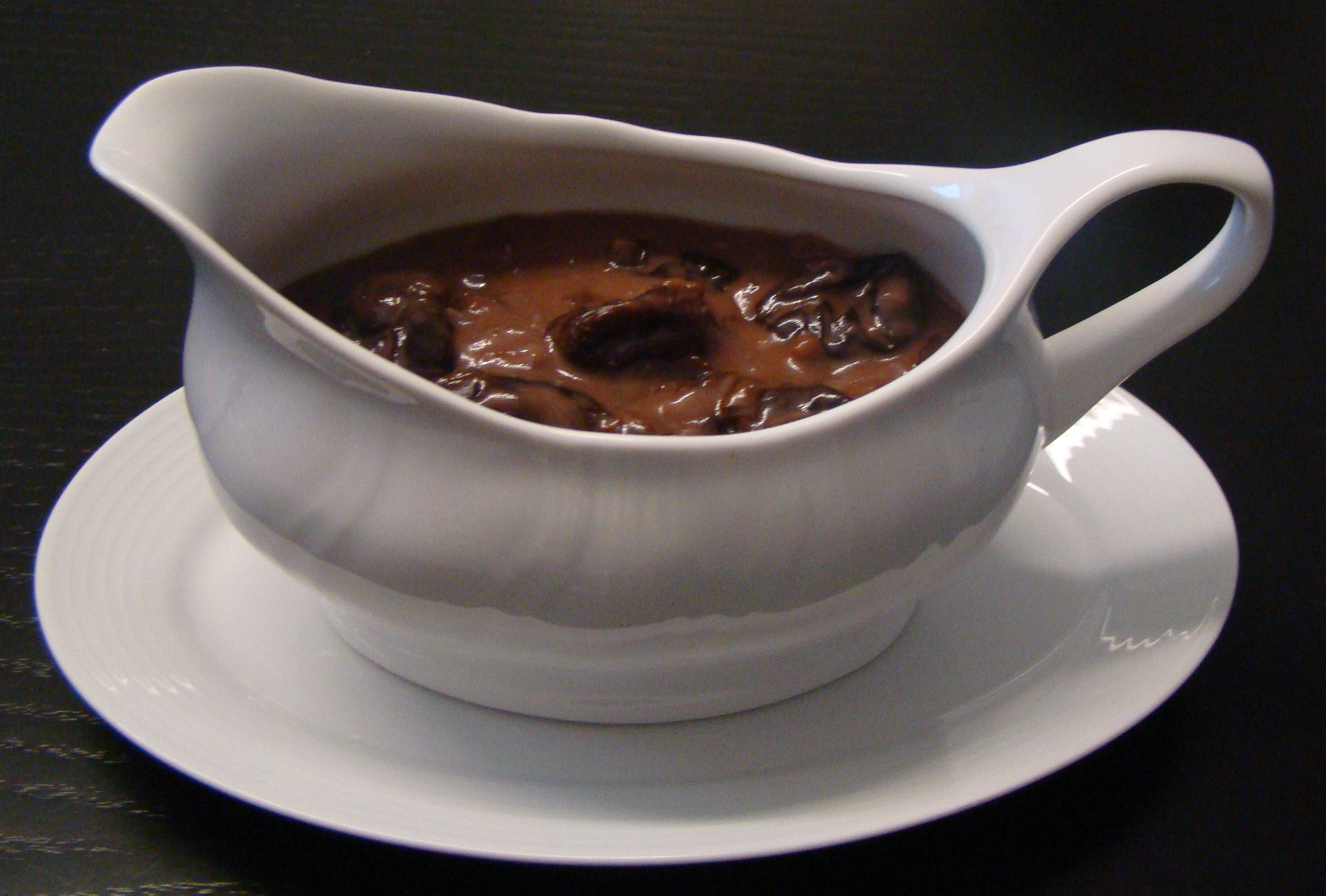 INGREDIENTES: 1 cucharada de aceite de oliva virgen, 1 cebolla blanca, 150 gramos de ciruelas pasas sin hueso, 1/4 litro de vino blanco, 1/4 litro de caldo de pollo, 1/4 litro de crema de leche.
