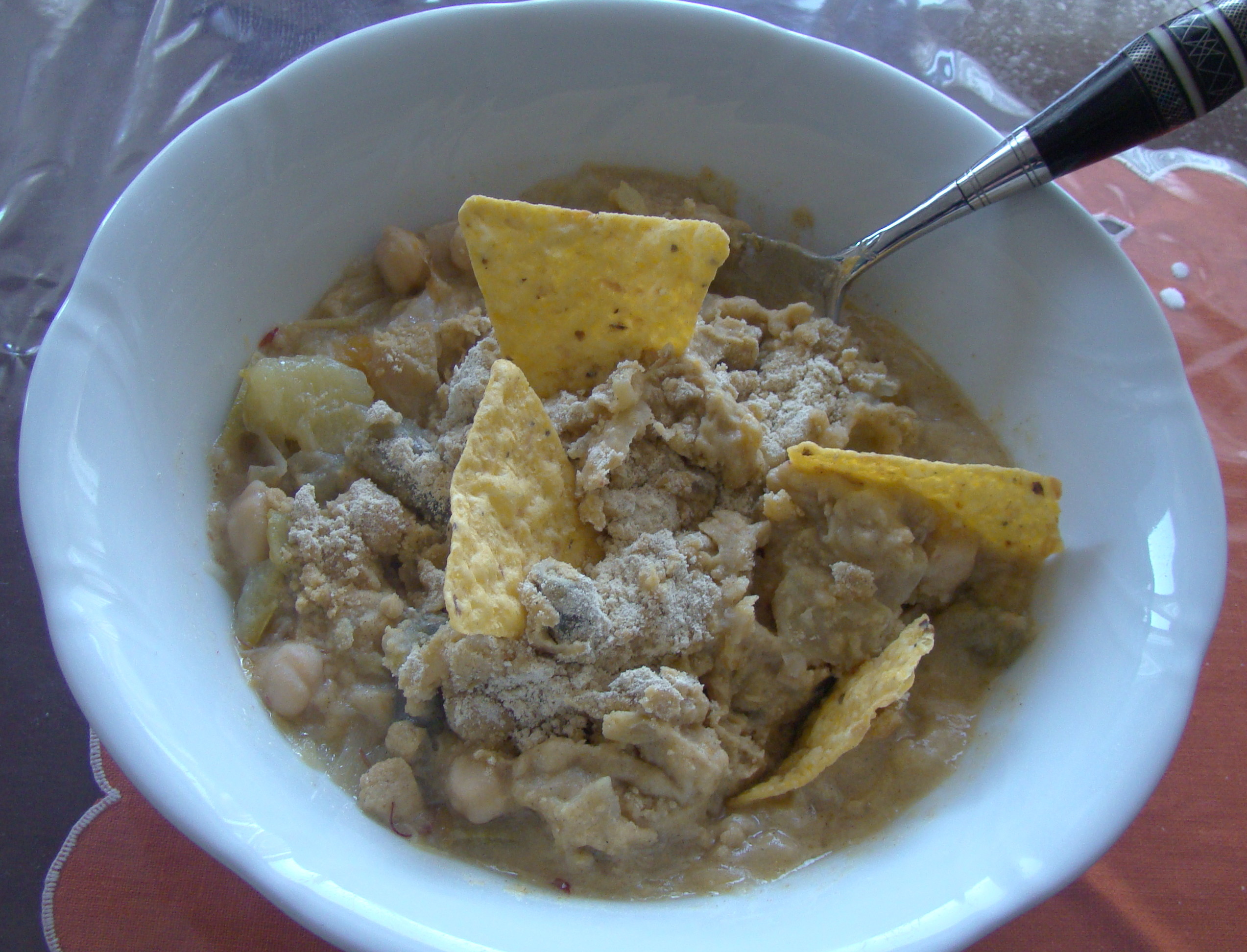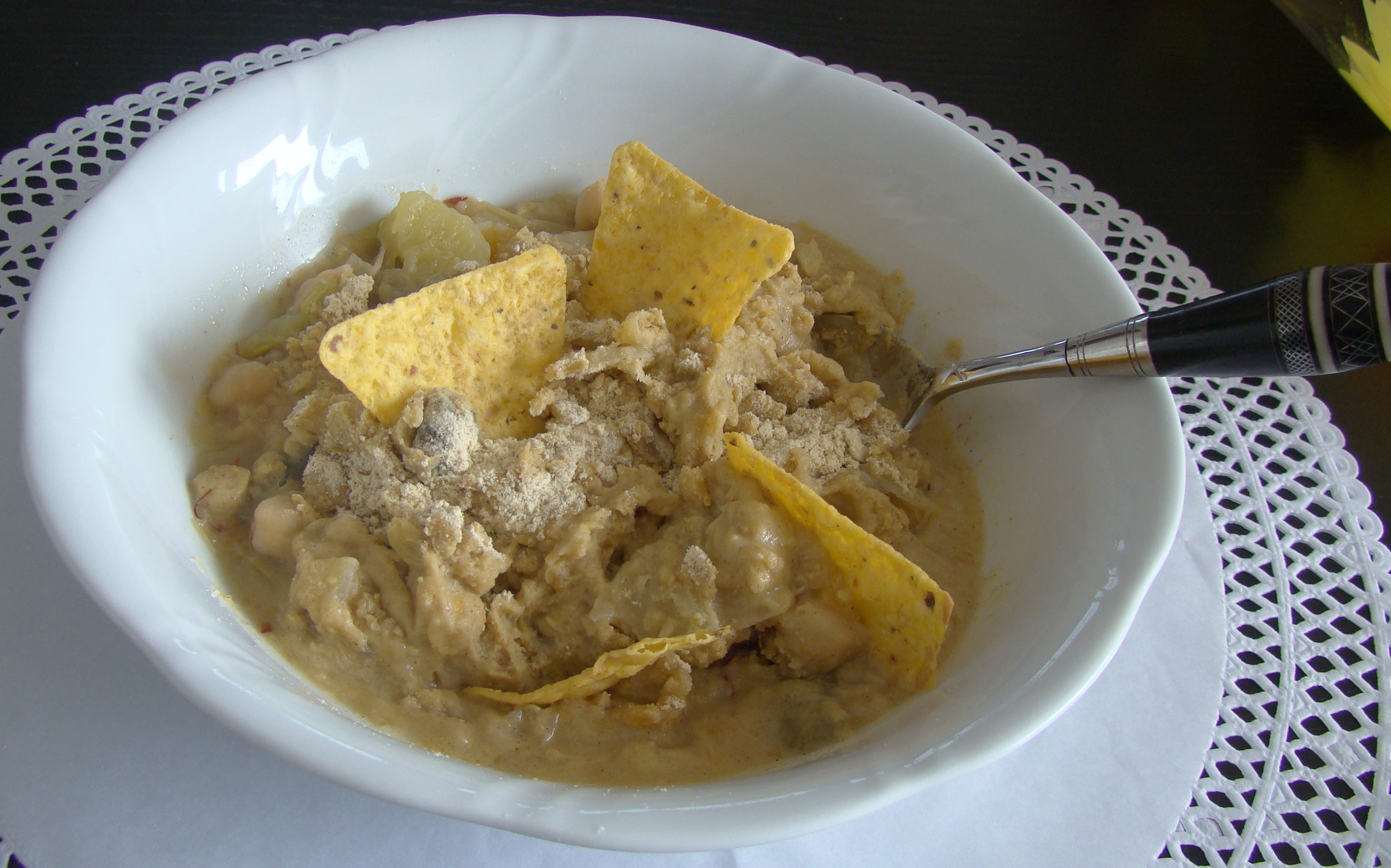 INGREDIENTES: 1/2 vaso de garbanzos, 100 gramos de calabaza, 1 cebolla pequeña, 1/2 trozo de col blanca, 2 dientes de ajo, 1 calabacín pequeño, 2 papas, 1 cucharada de aceite de oliva virgen, 1 cucharadita de sal gruesa, una pizca de comino nachos al gusto y 4 cucharadas de gofio de millo.
