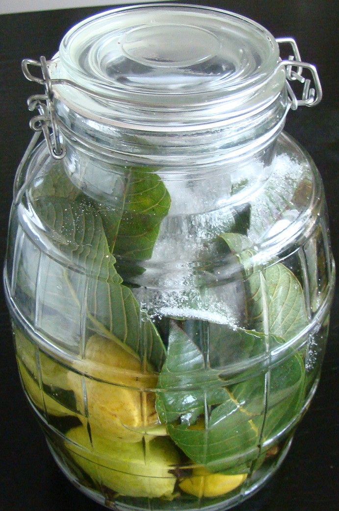 INGREDIENTES: 15 guayabas enteras,y partidas 8 ramas pequeñas del guayabo, 1 botella de ron blanco al gusto de su marca preferida, 3 cucharadas de azúcar blanca.